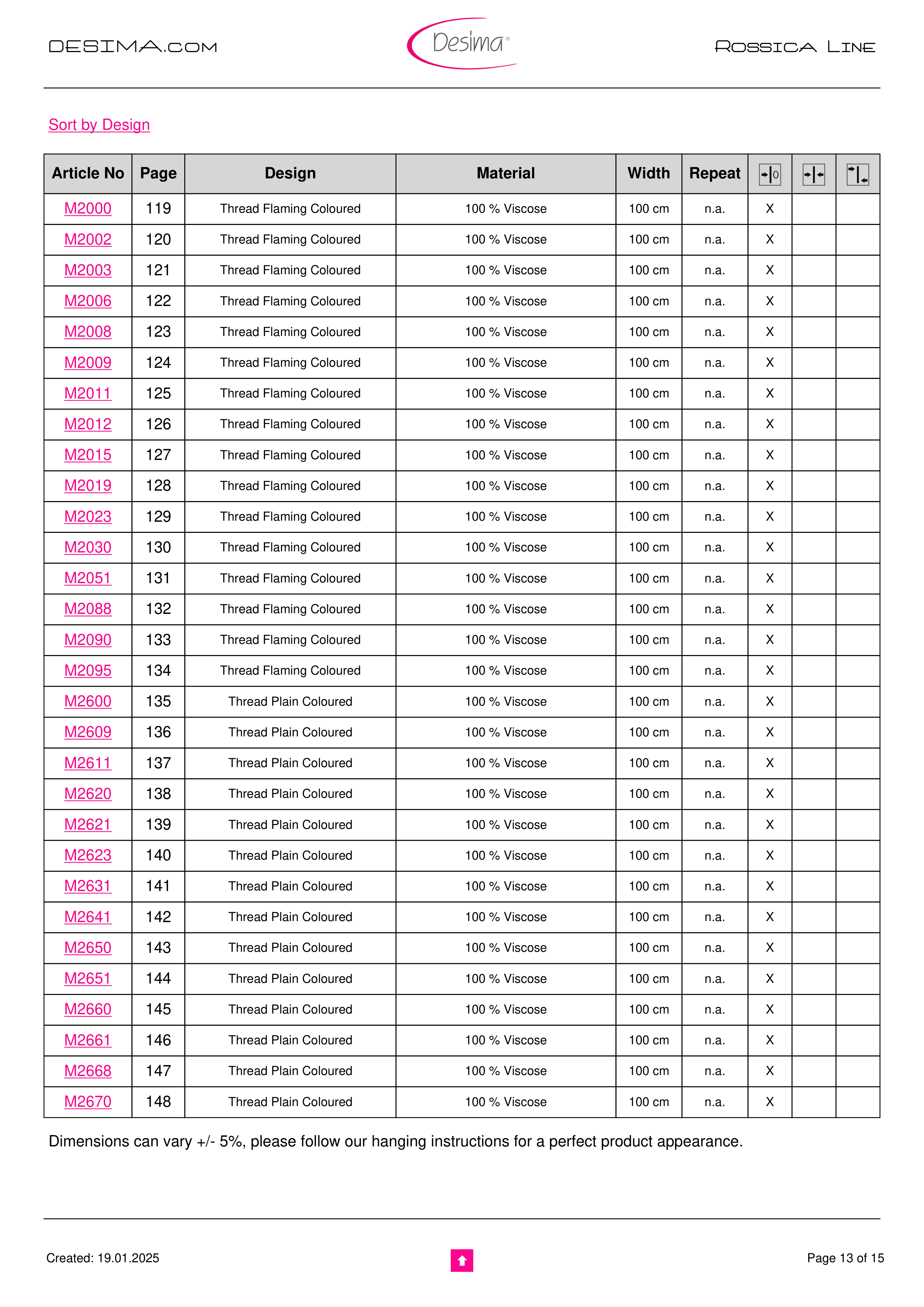 Dimensions can vary +/- 5%, please follow our hanging instructions for a perfect product appearance.