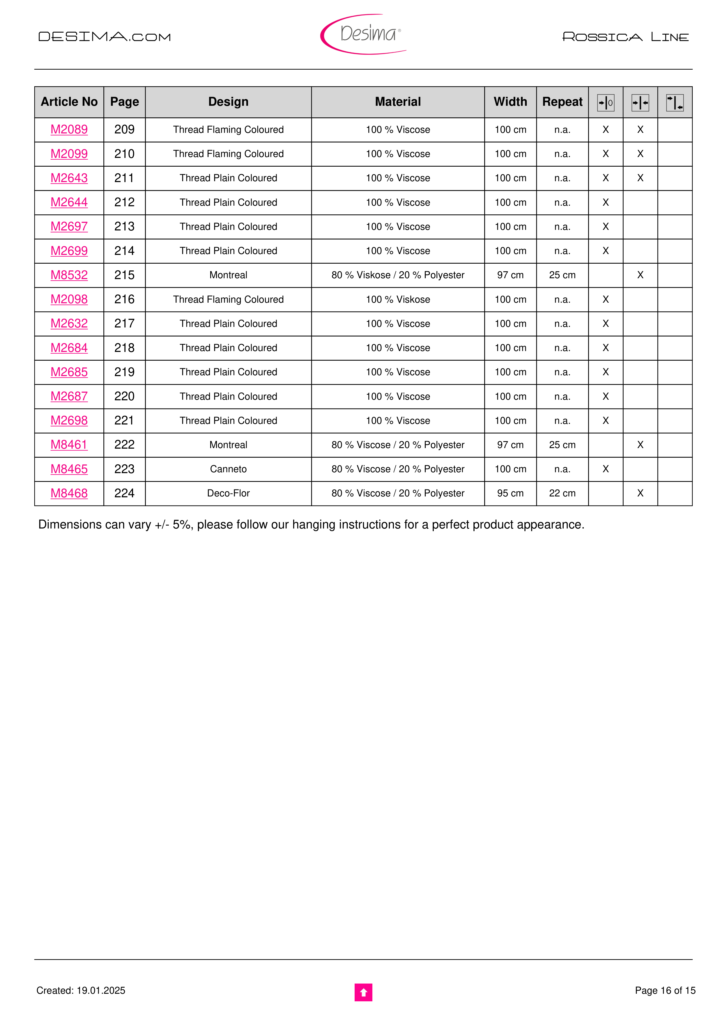 Dimensions can vary +/- 5%, please follow our hanging instructions for a perfect product appearance.