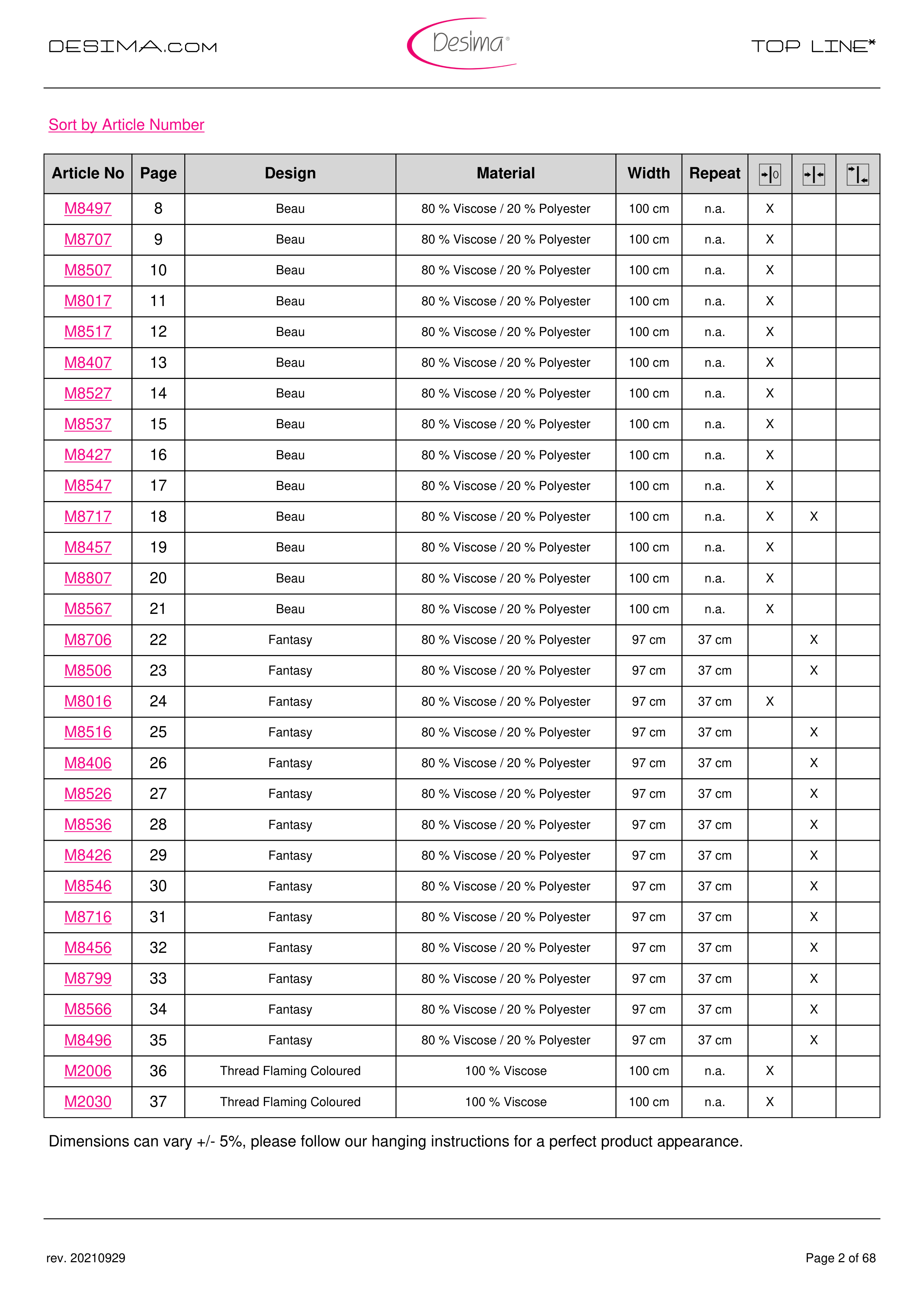 Sort by Article Number