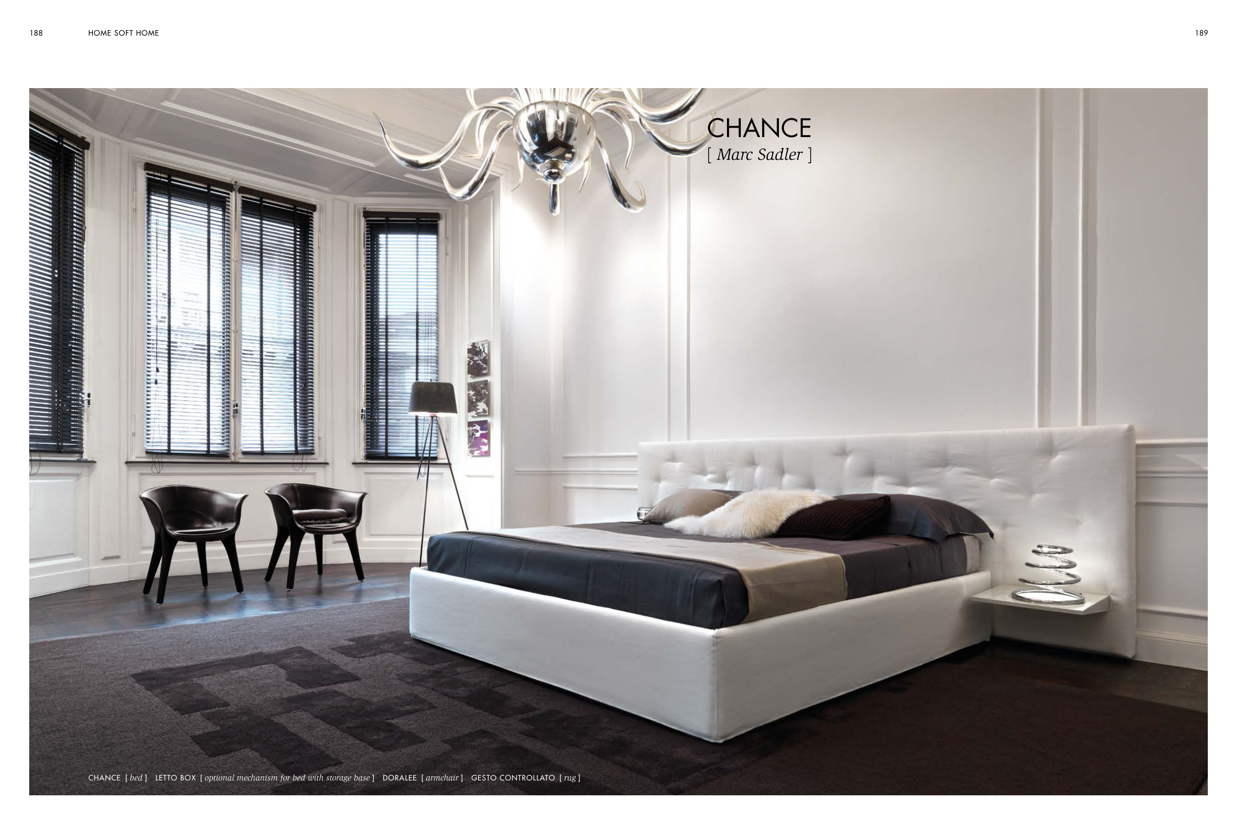CHANCE [ bed ] LETTO BOX [ optional mechanism for bed with storage base ] DORALEE [ armchair ] GESTO CONTROLLATO [ rug ]
