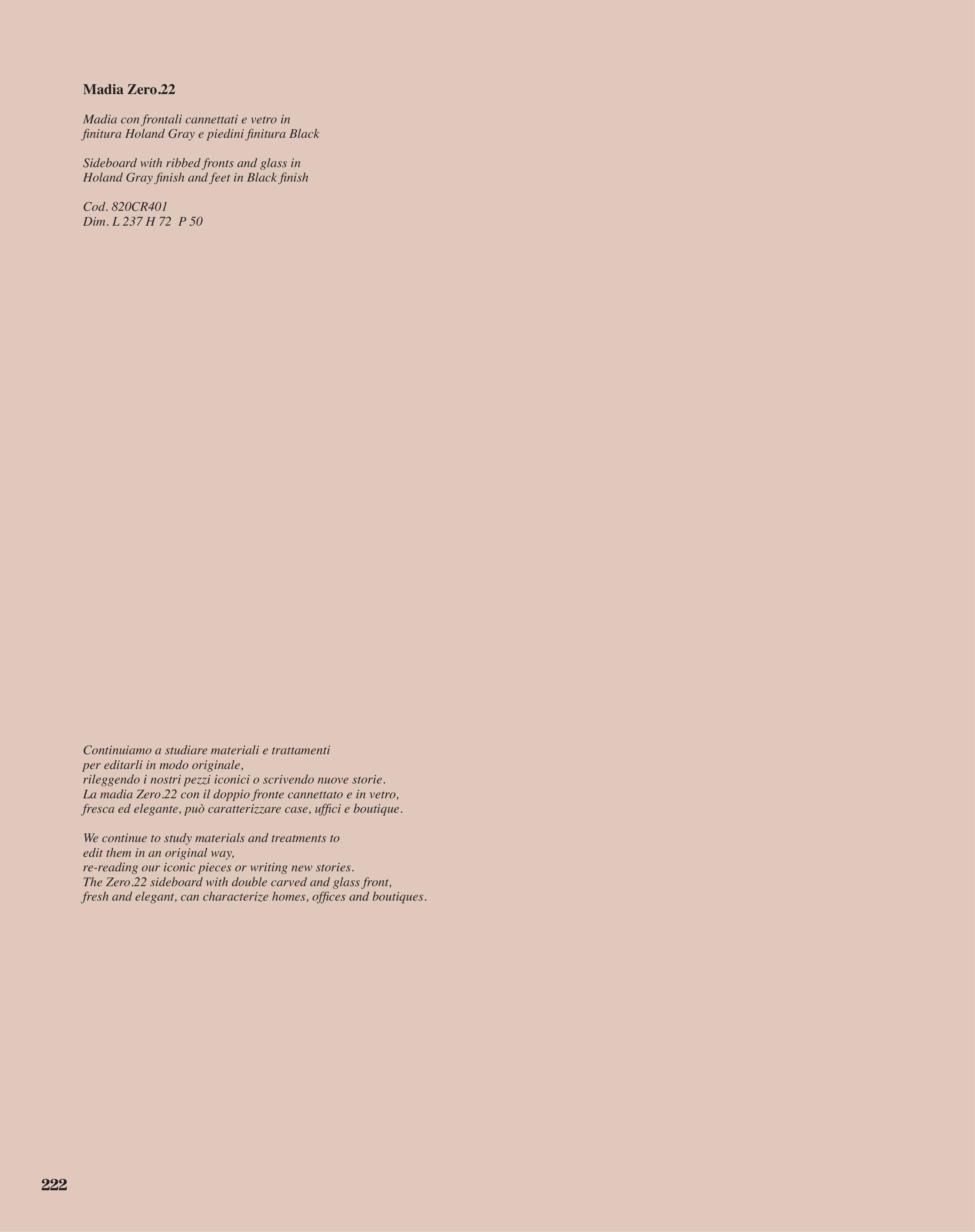 The Zero.22 sideboard with double carved and glass front,