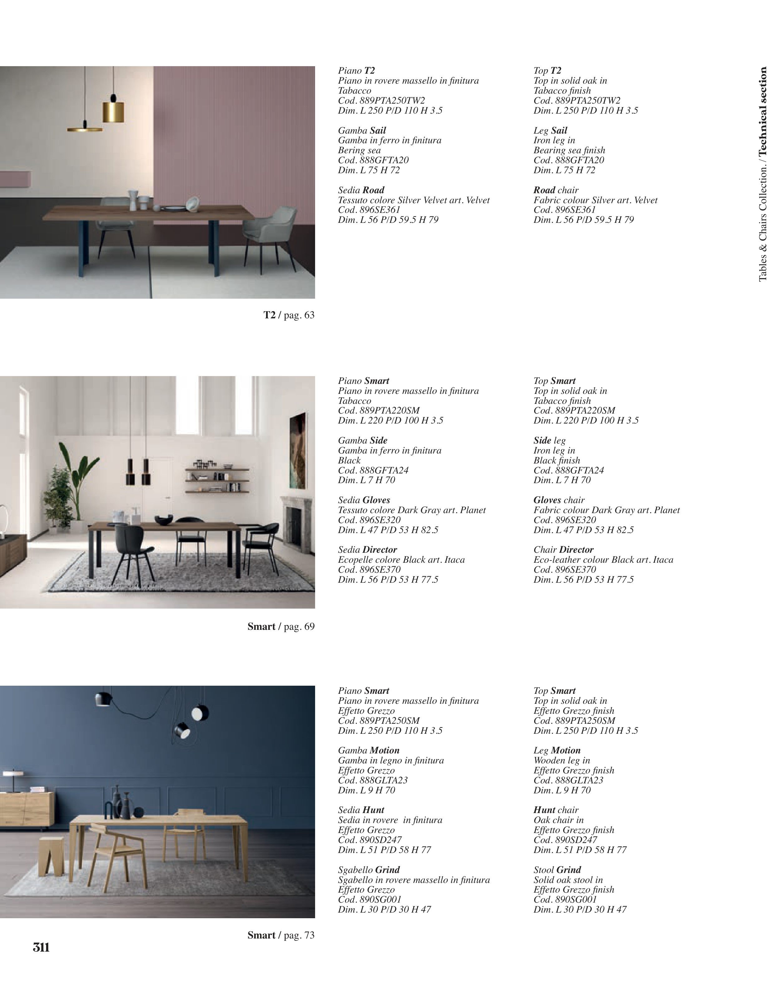 Tables & Chairs Collection. / Technical section