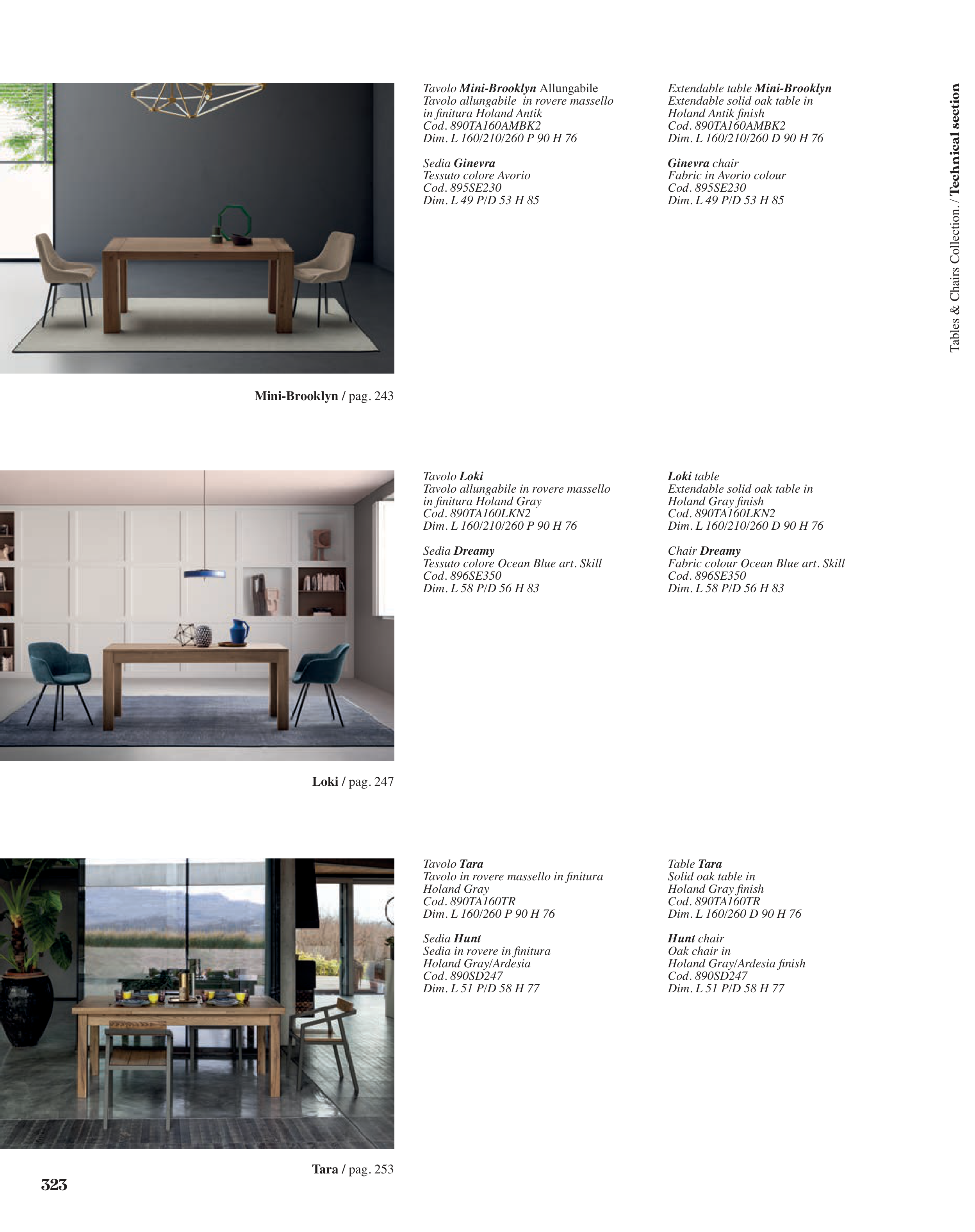 Tables & Chairs Collection. / Technical section
