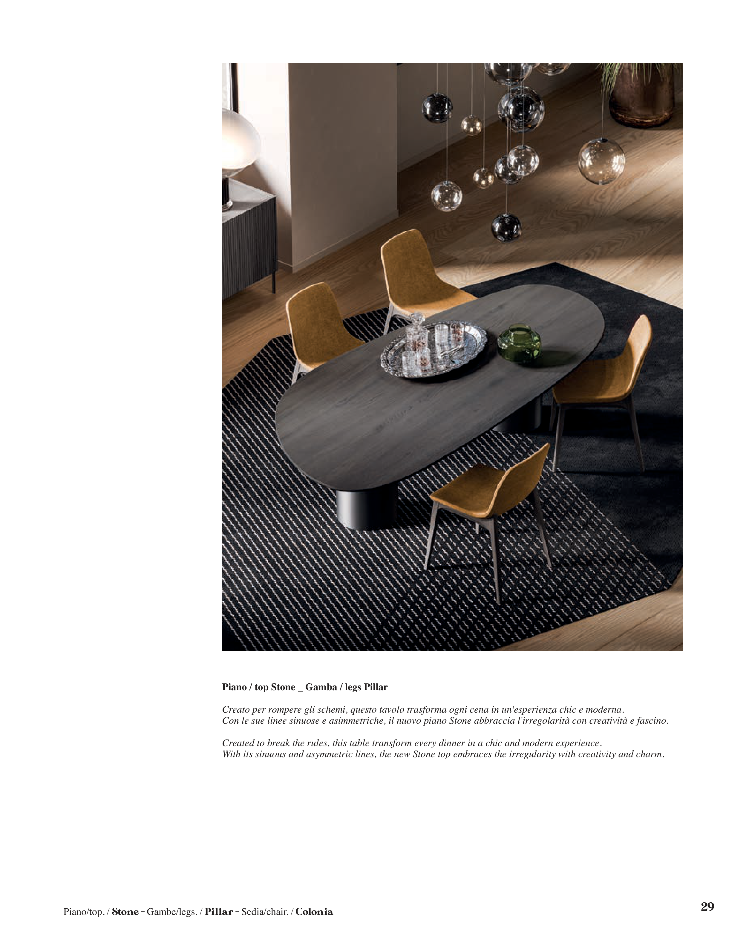 Piano/top. / Stone - Gambe/legs. / Pillar - Sedia/chair. / Colonia