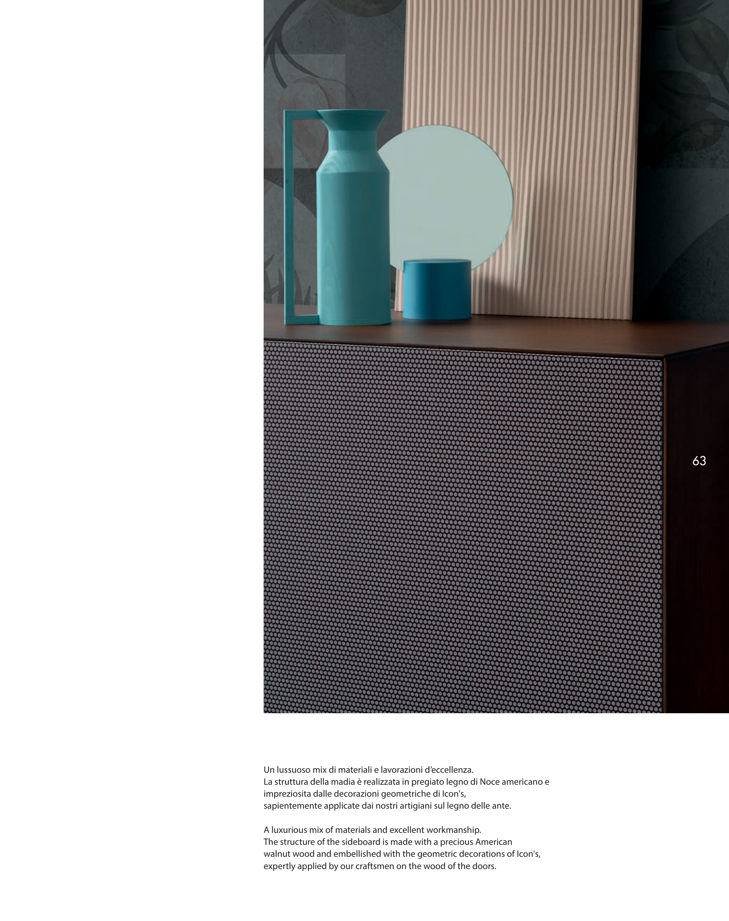 Un lussuoso mix di materiali e lavorazioni d’eccellenza.