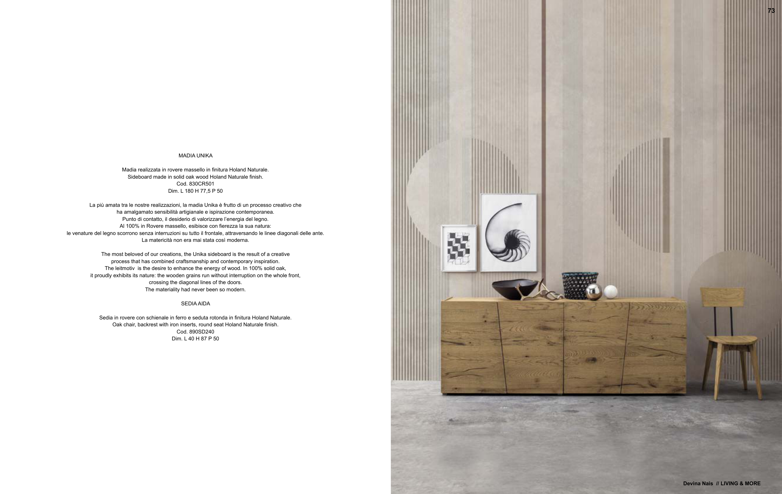 The leitmotiv is the desire to enhance the energy of wood. In 100% solid oak,