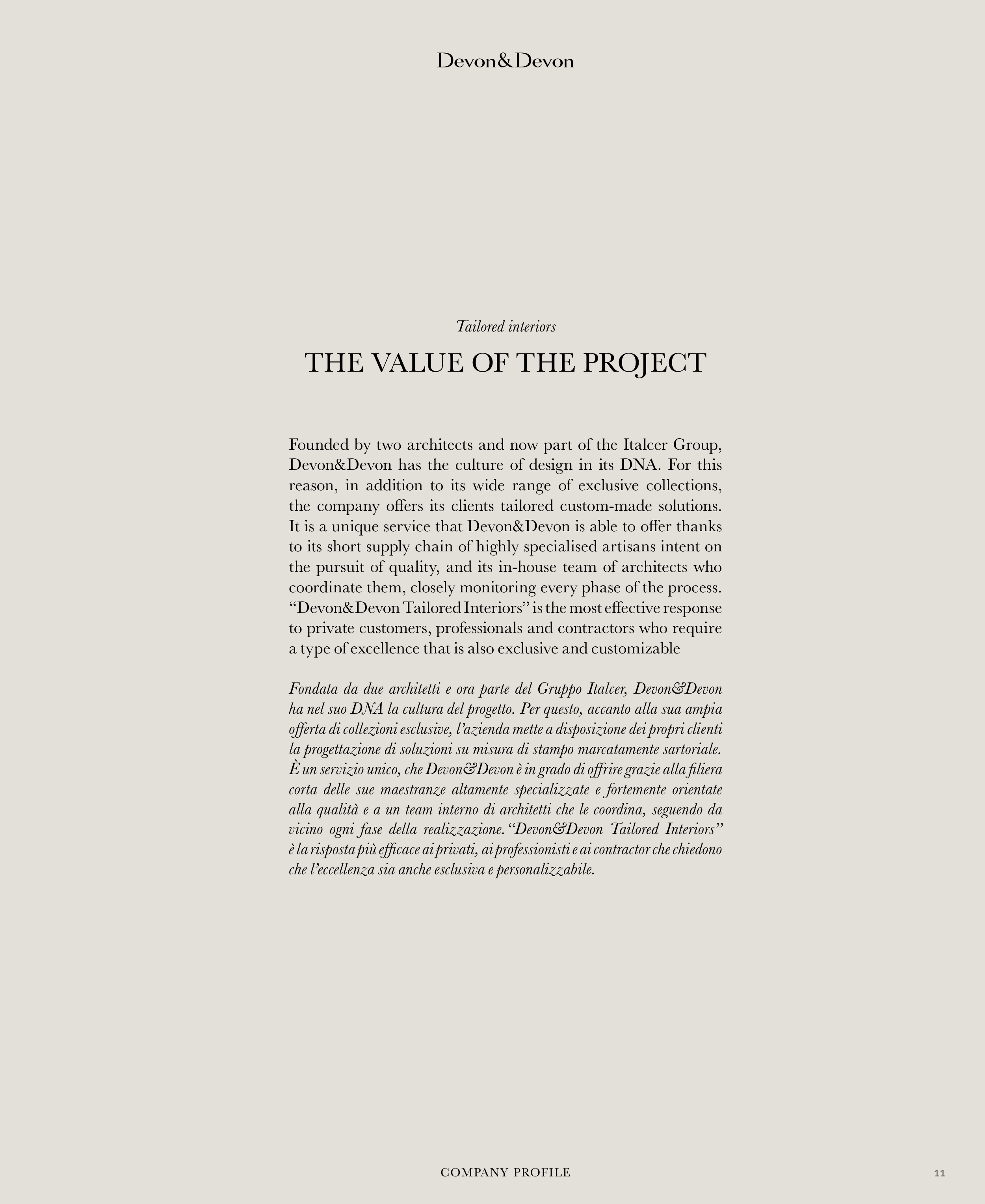 Fondata da due architetti e ora parte del Gruppo Italcer, Devon&Devon