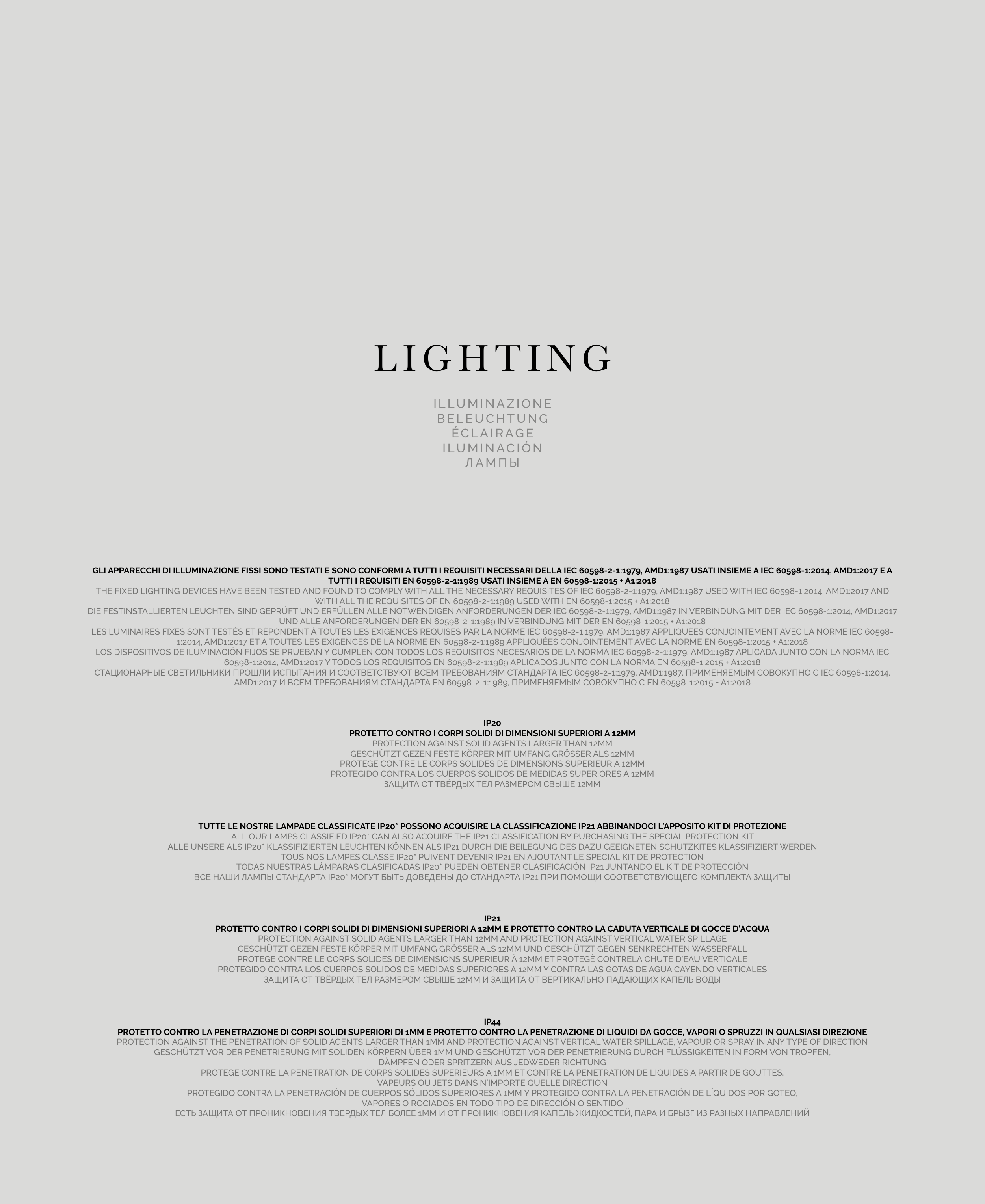 ALL OUR LAMPS CLASSIFIED IP20* CAN ALSO ACQUIRE THE IP21 CLASSIFICATION BY PURCHASING THE SPECIAL PROTECTION KIT