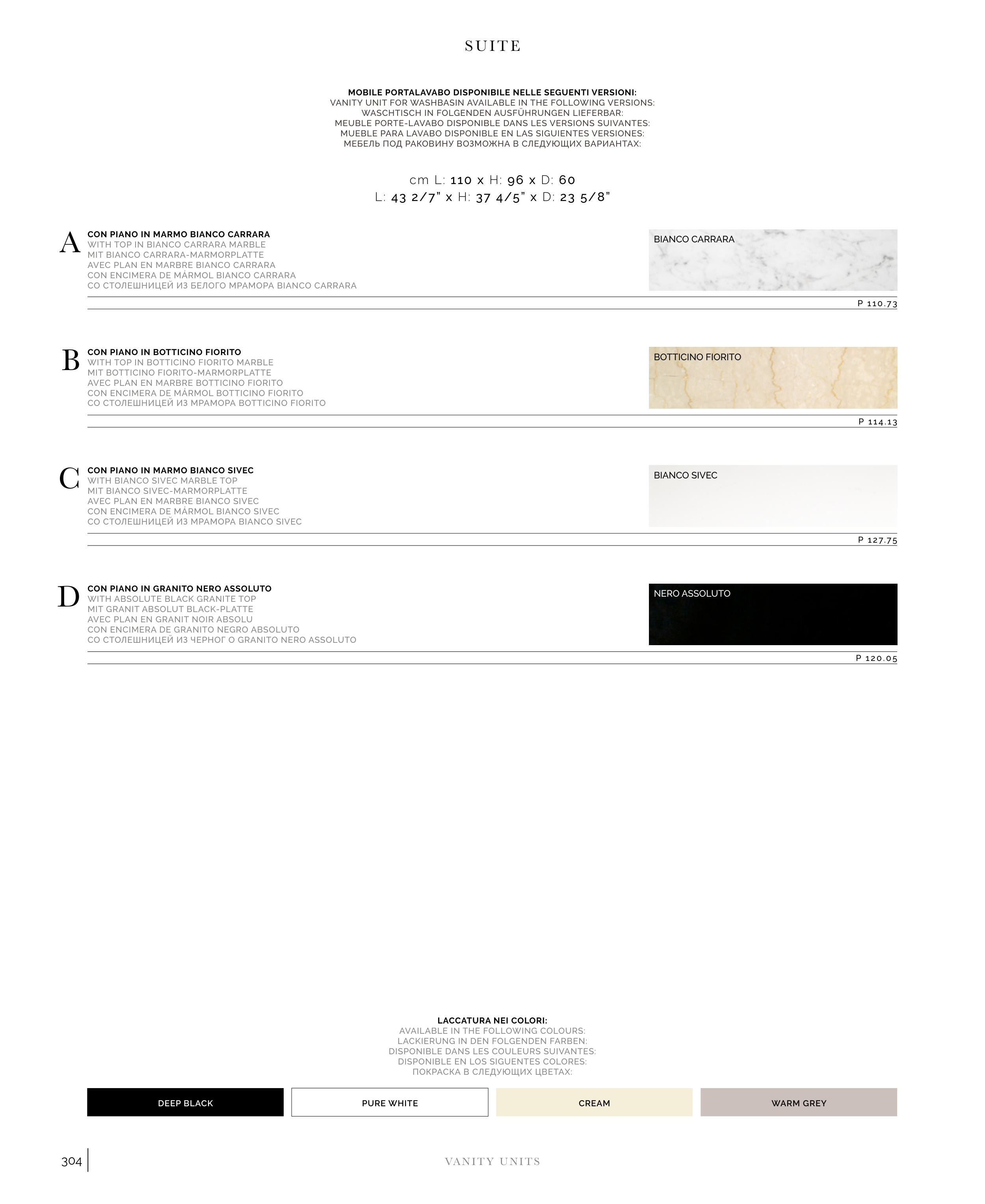 WASCHTISCH IN FOLGENDEN AUSFÜHRUNGEN LIEFERBAR: