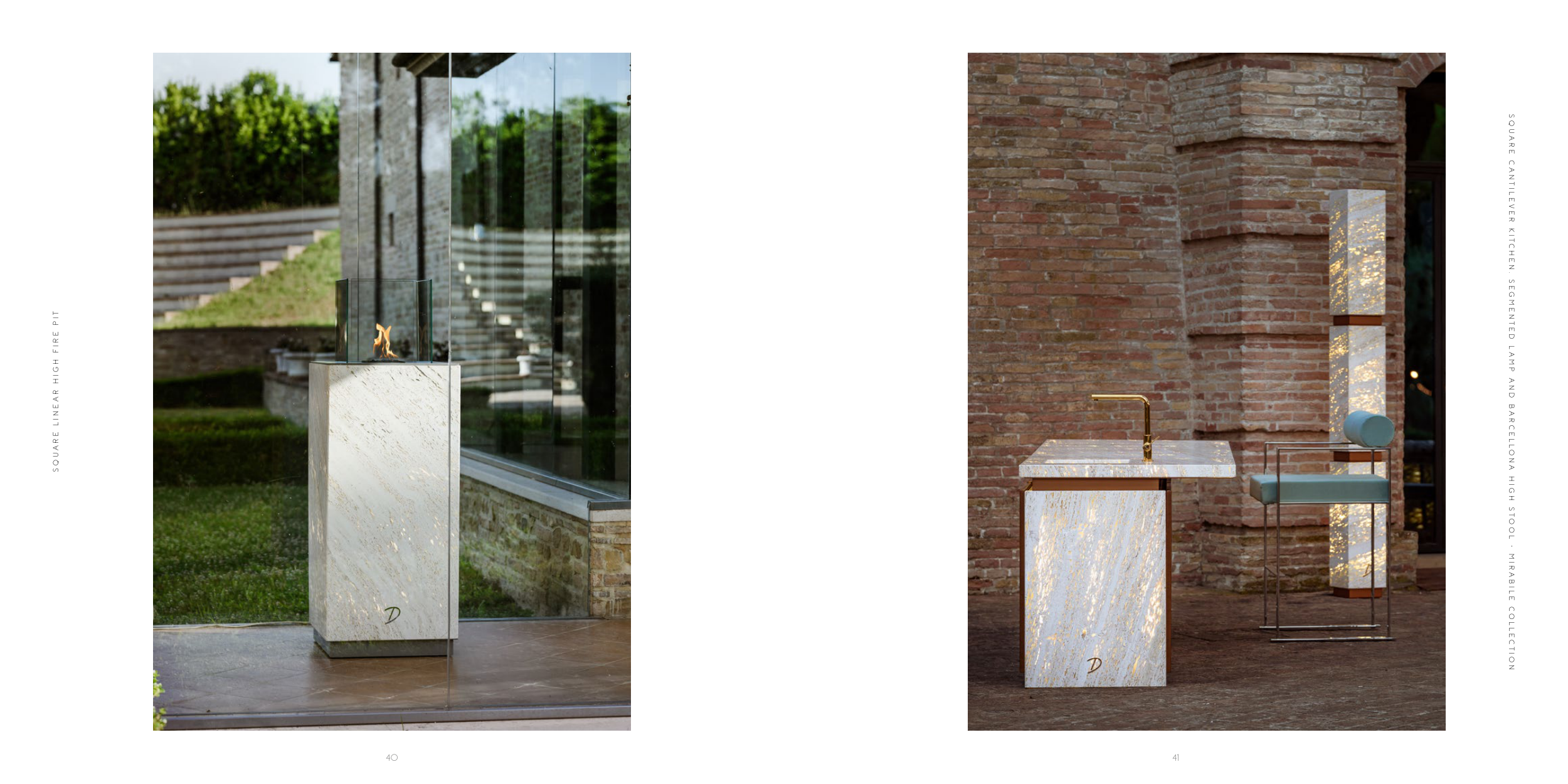 S Q U A R E C A N T I L E V E R K I T C H E N , S E G M E N T E D L A M P A N D B A R C E L L O N A H I G H S T O O L - M I R A B I L E C O L L E C T I O N