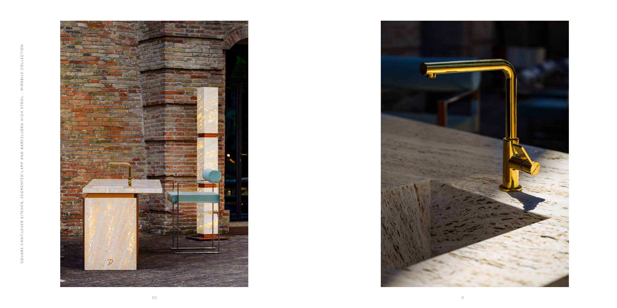 S Q U A R E C A N T I L E V E R K I T C H E N , S E G M E N T E D L A M P A N D B A R C E L L O N A H I G H S T O O L - M I R A B I L E C O L L E C T I O N