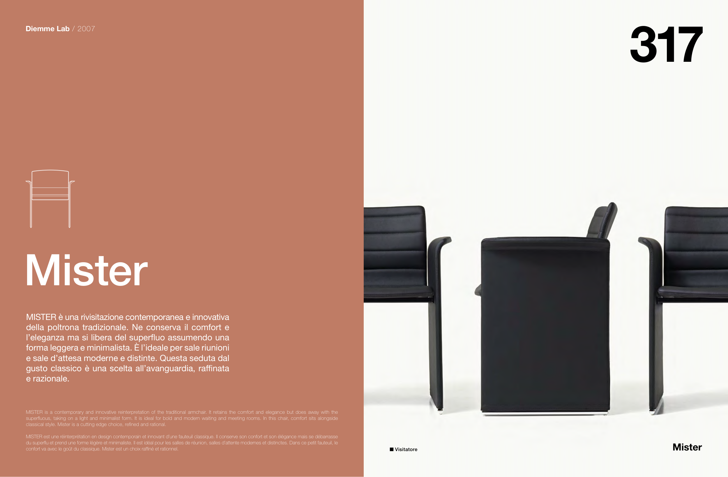 MISTER is a contemporary and innovative reinterpretation of the traditional armchair. It retains the comfort and elegance but does away with the