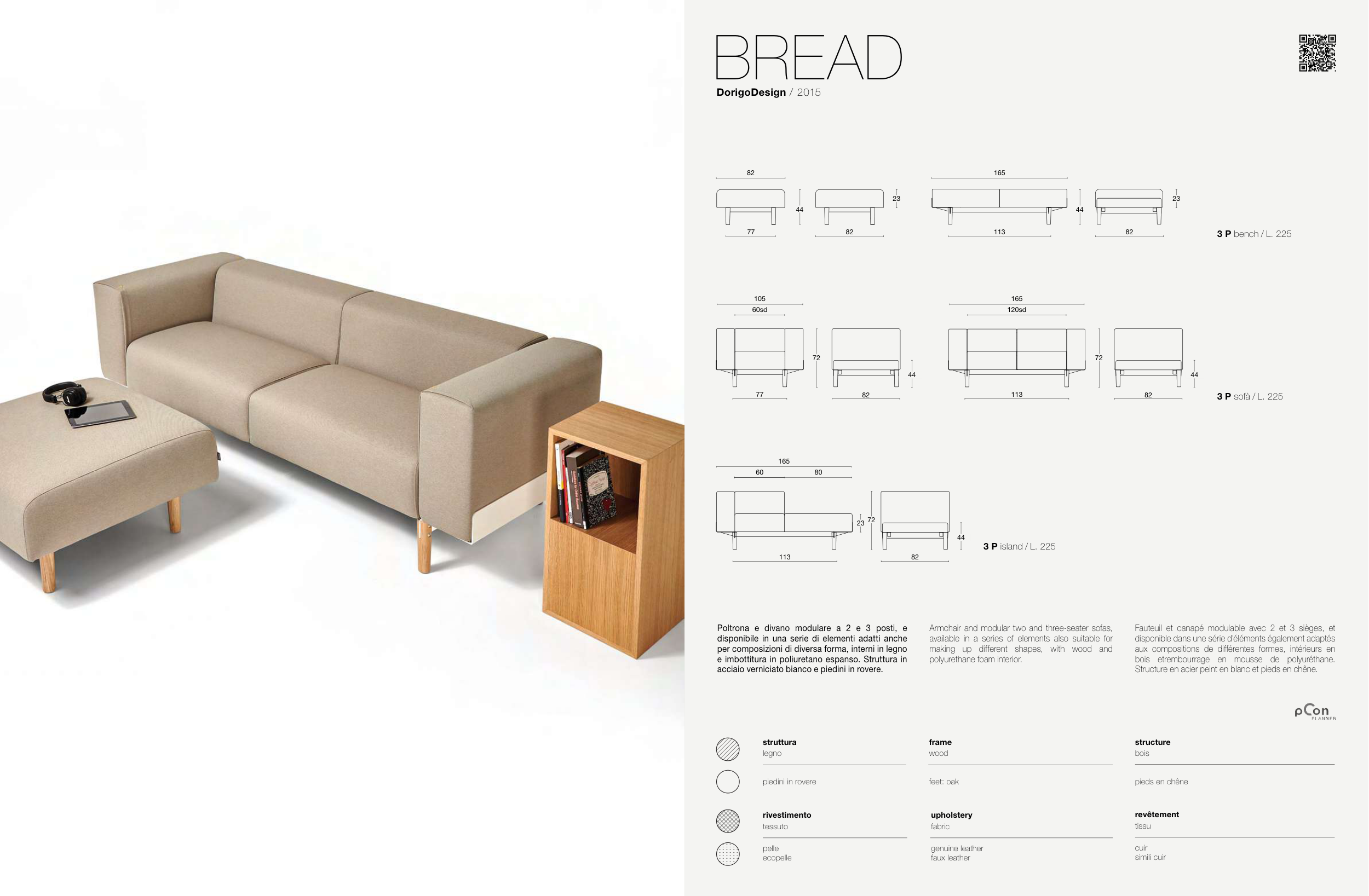 Fauteuil et canapé modulable avec 2 et 3 sièges, et
