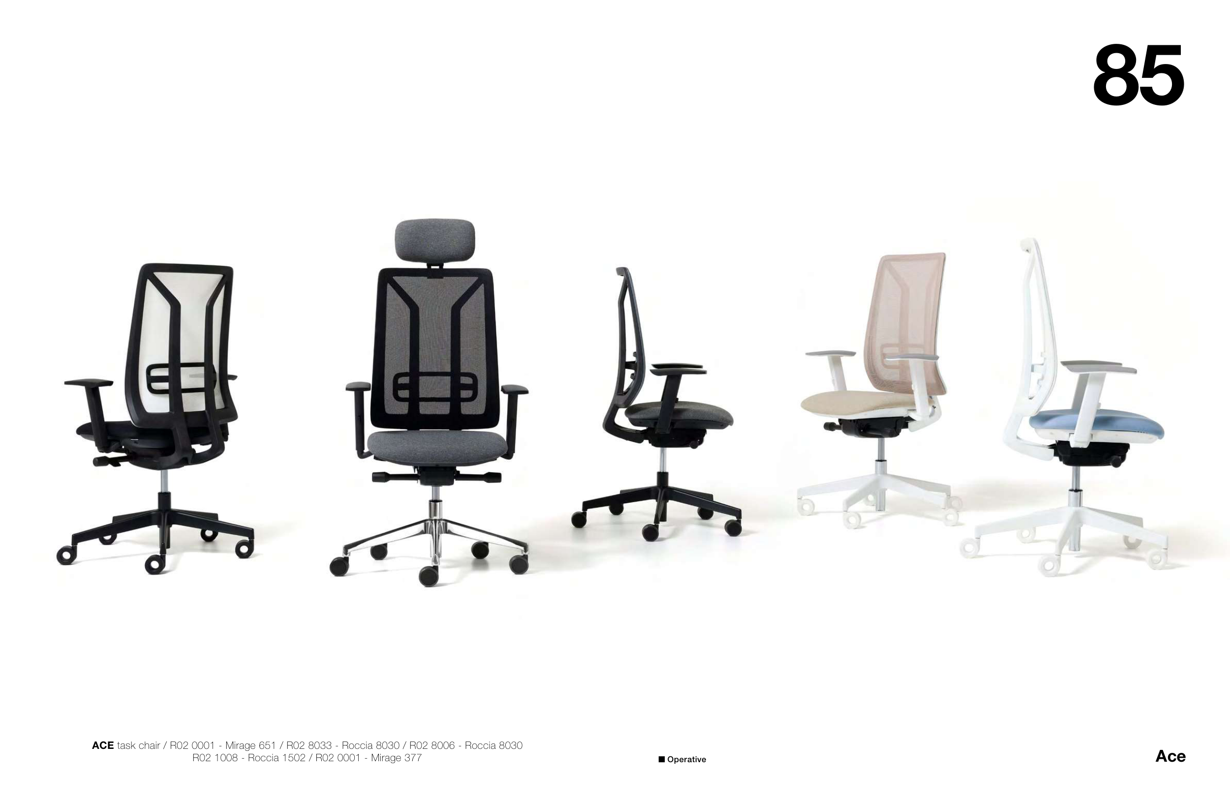 ACE task chair / R02 0001 - Mirage 651 / R02 8033 - Roccia 8030 / R02 8006 - Roccia 8030