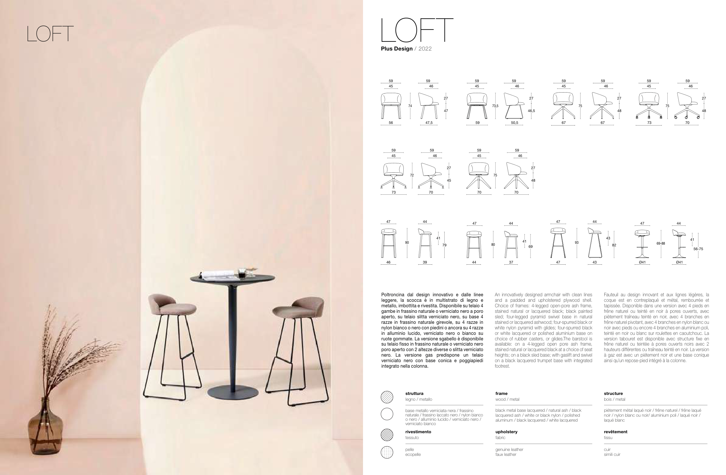 ruote gommate. La versione sgabello è disponibile