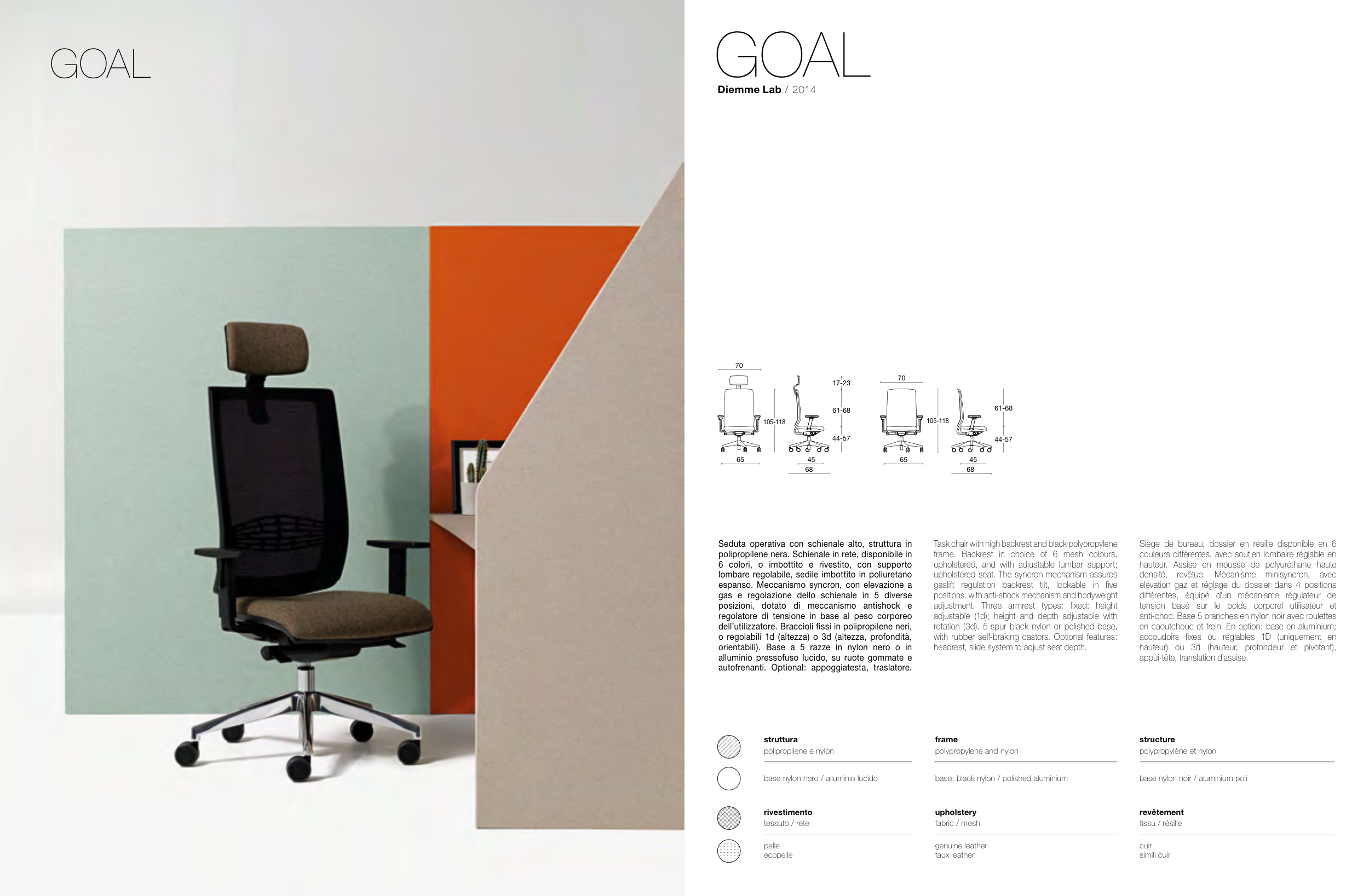 lombare regolabile, sedile imbottito in poliuretano