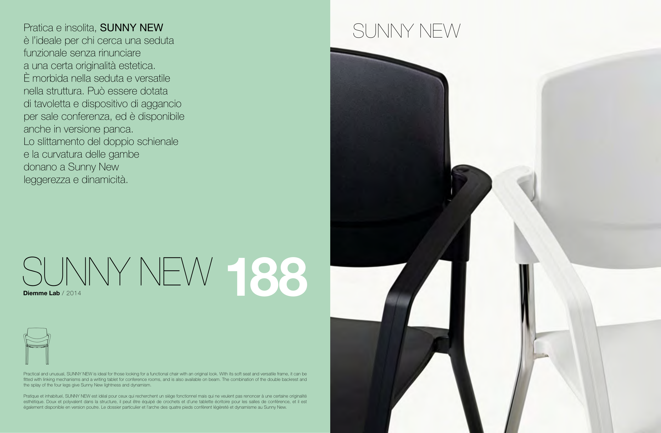 Practical and unusual, SUNNY NEW is ideal for those looking for a functional chair with an original look. With its soft seat and versatile frame, it can be