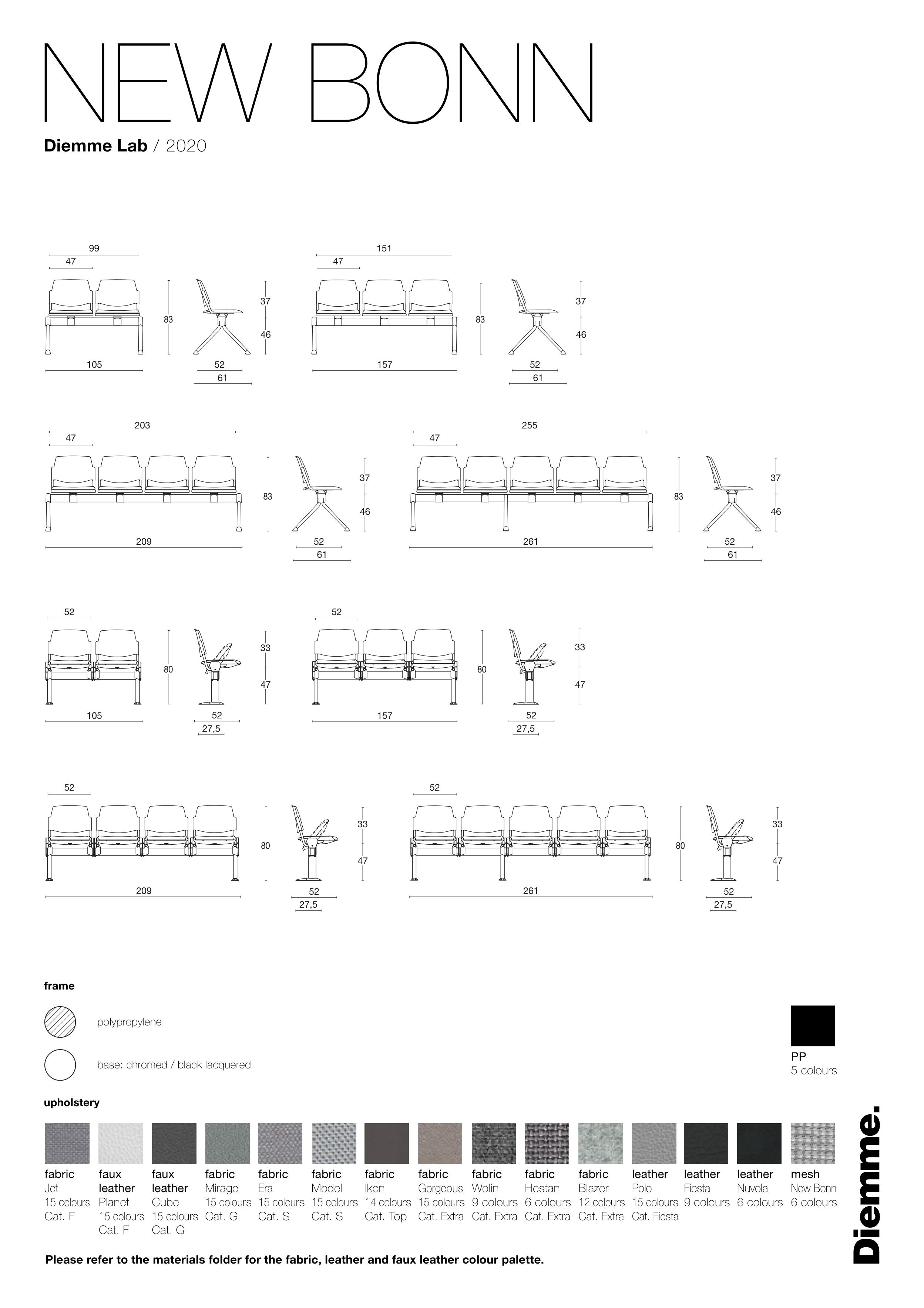 Please refer to the materials folder for the fabric, leather and faux leather colour palette.