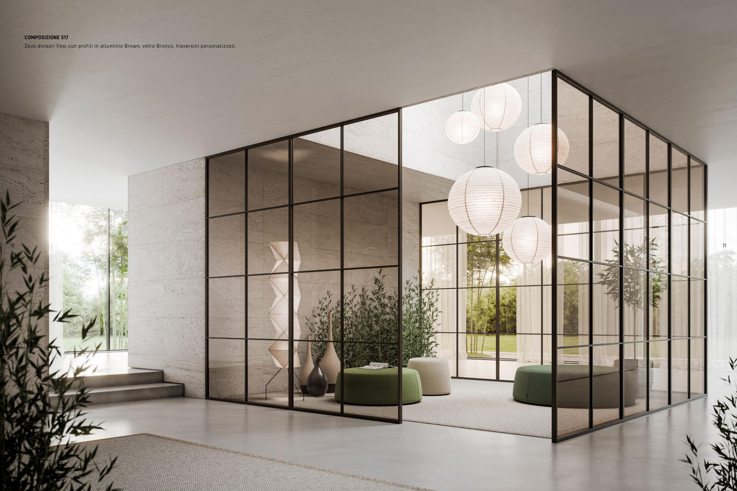 Zeus divisori fissi con profili in alluminio Brown, vetro Bronzo, traversini personalizzati.