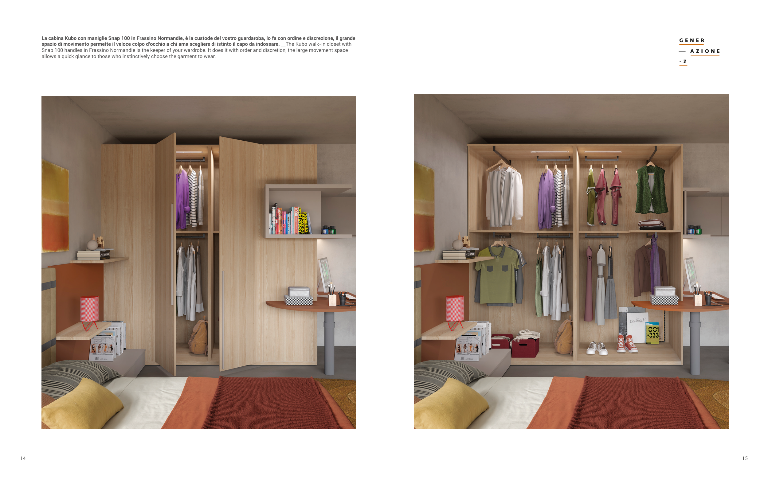 La cabina Kubo con maniglie Snap 100 in Frassino Normandie, è la custode del vostro guardaroba, lo fa con ordine e discrezione, il grande