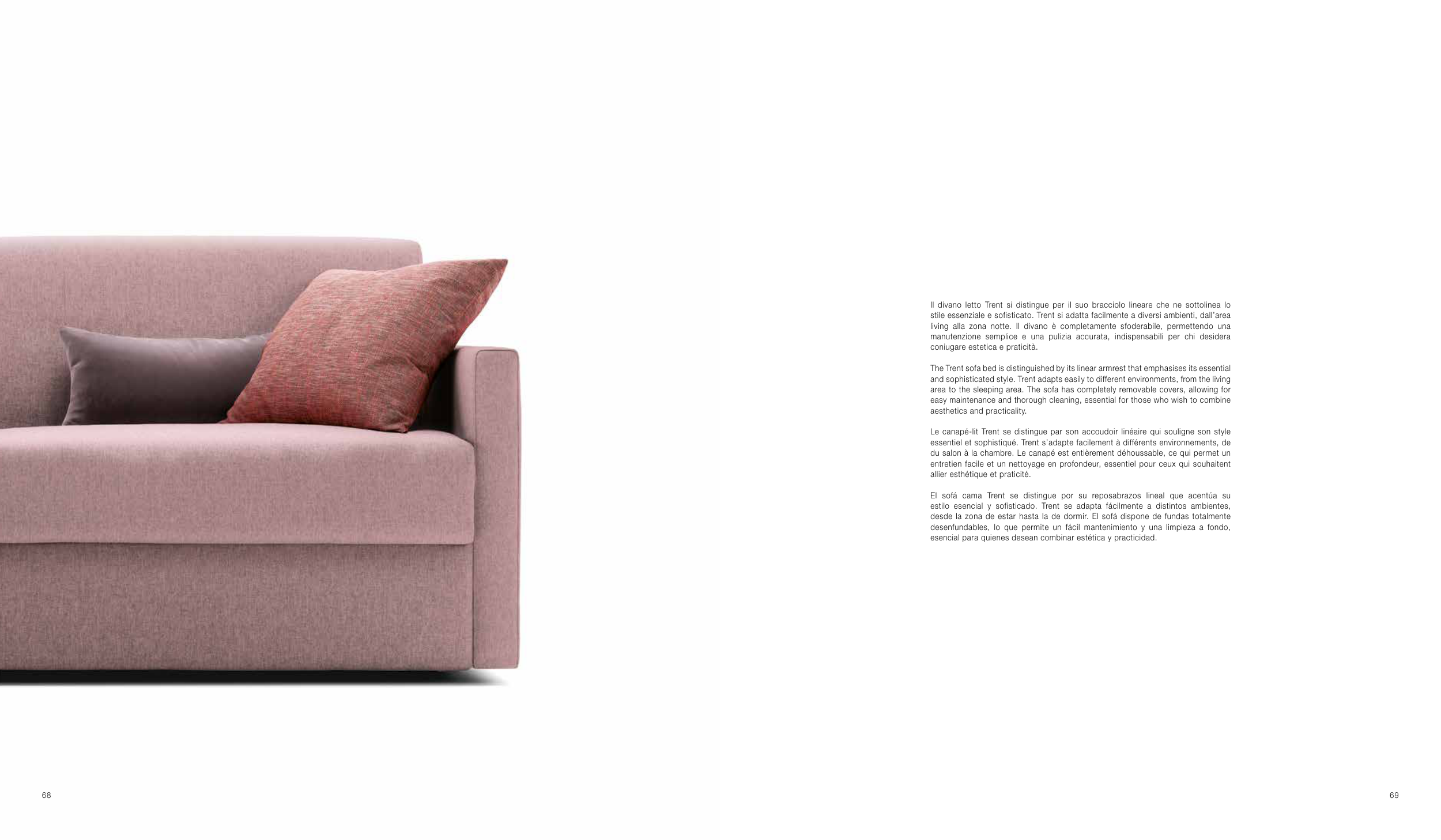 The Trent sofa bed is distinguished by its linear armrest that emphasises its essential