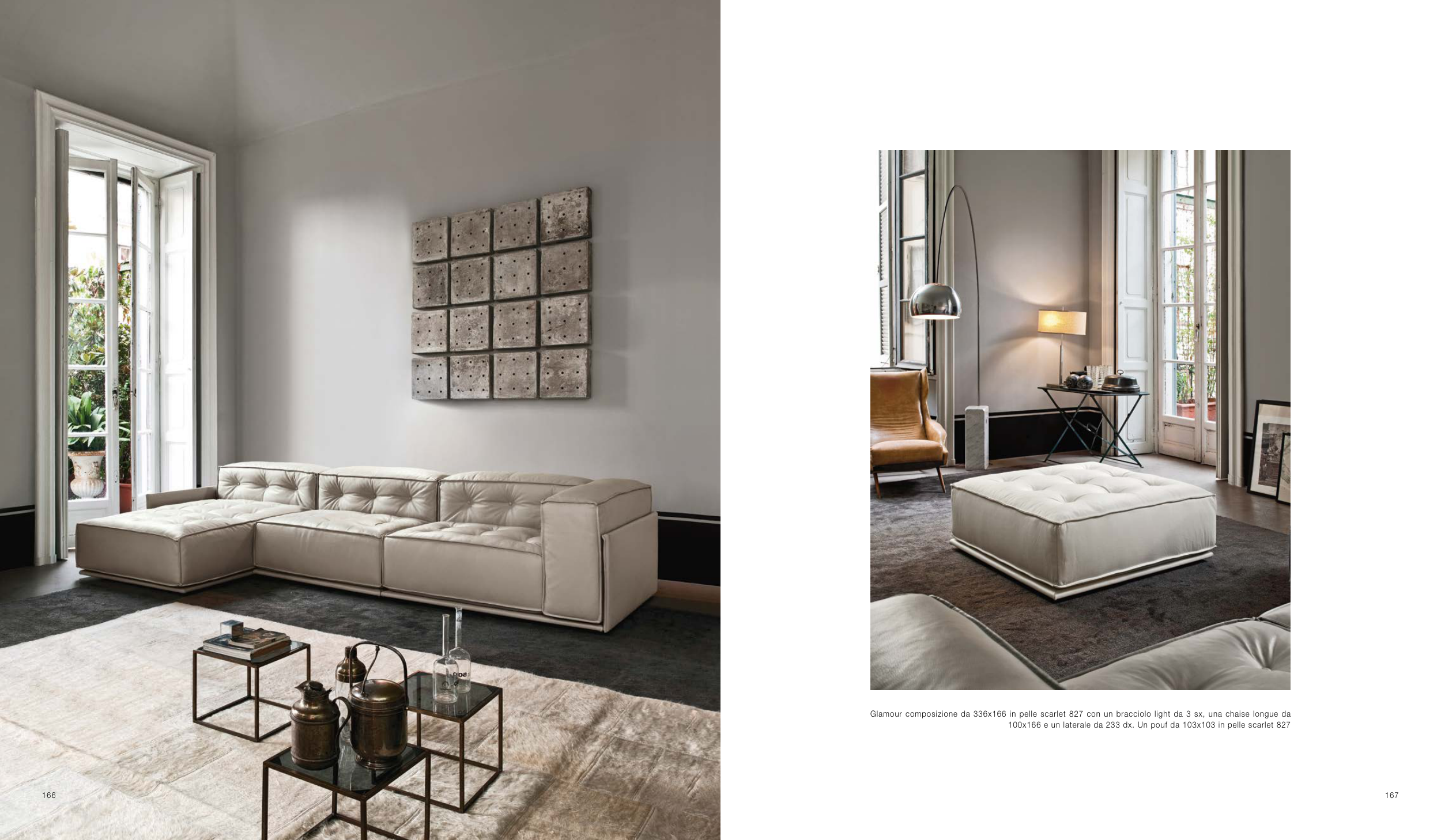 100x166 e un laterale da 233 dx. Un pouf da 103x103 in pelle scarlet 827