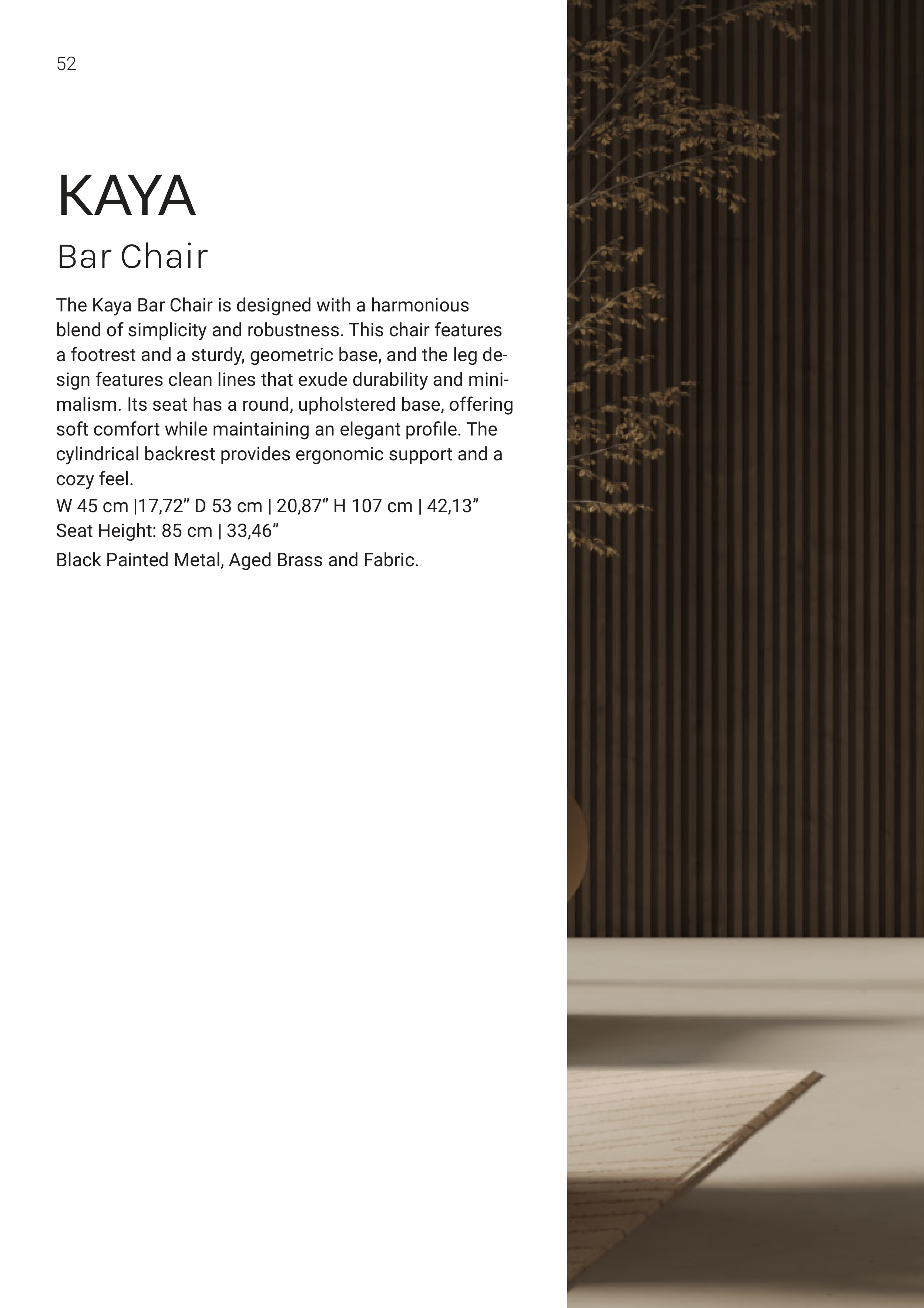 The Kaya Bar Chair is designed with a harmonious
