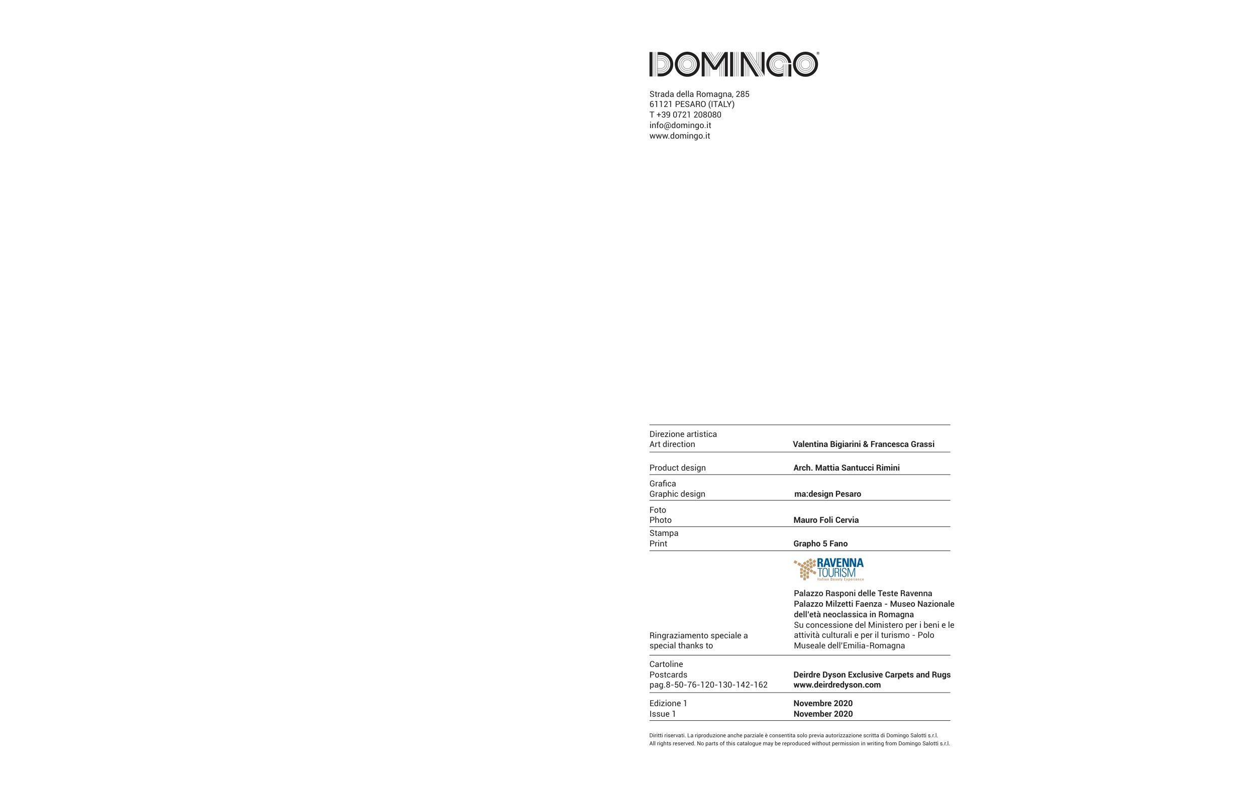 All rights reserved. No parts of this catalogue may be reproduced without permission in writing from Domingo Salotti s.r.l.