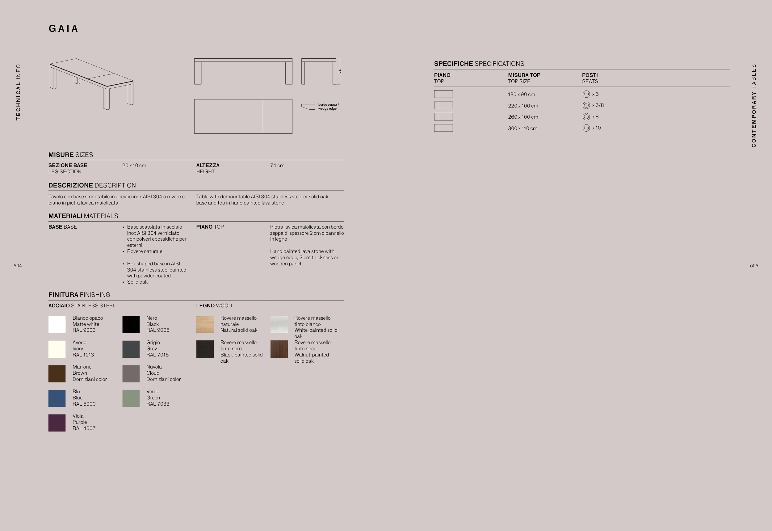 Tavolo con base smontabile in acciaio inox AISI 304 o rovere e