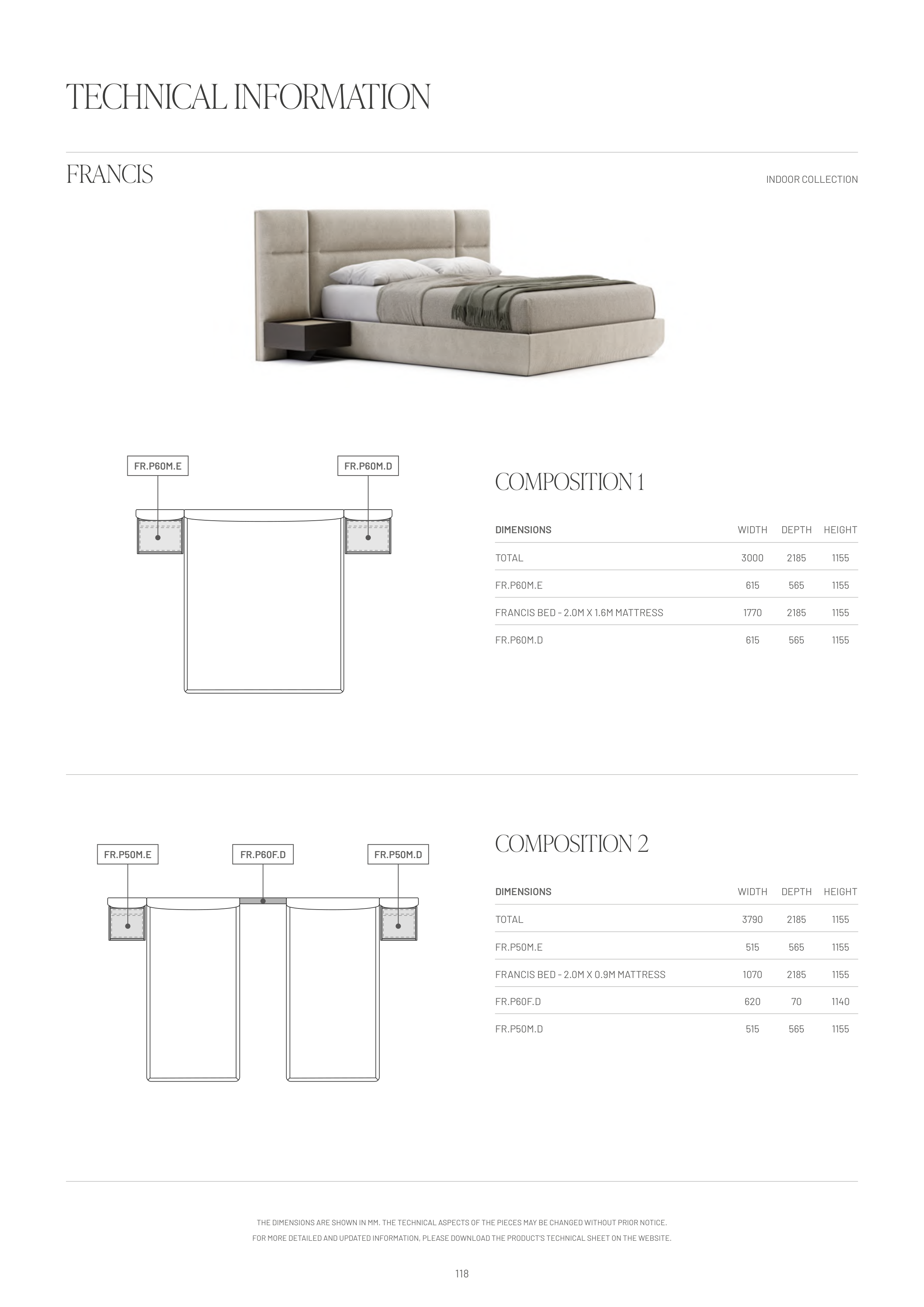 THE DIMENSIONS ARE SHOWN IN MM. THE TECHNICAL ASPECTS OF THE PIECES MAY BE CHANGED WITHOUT PRIOR NOTICE.