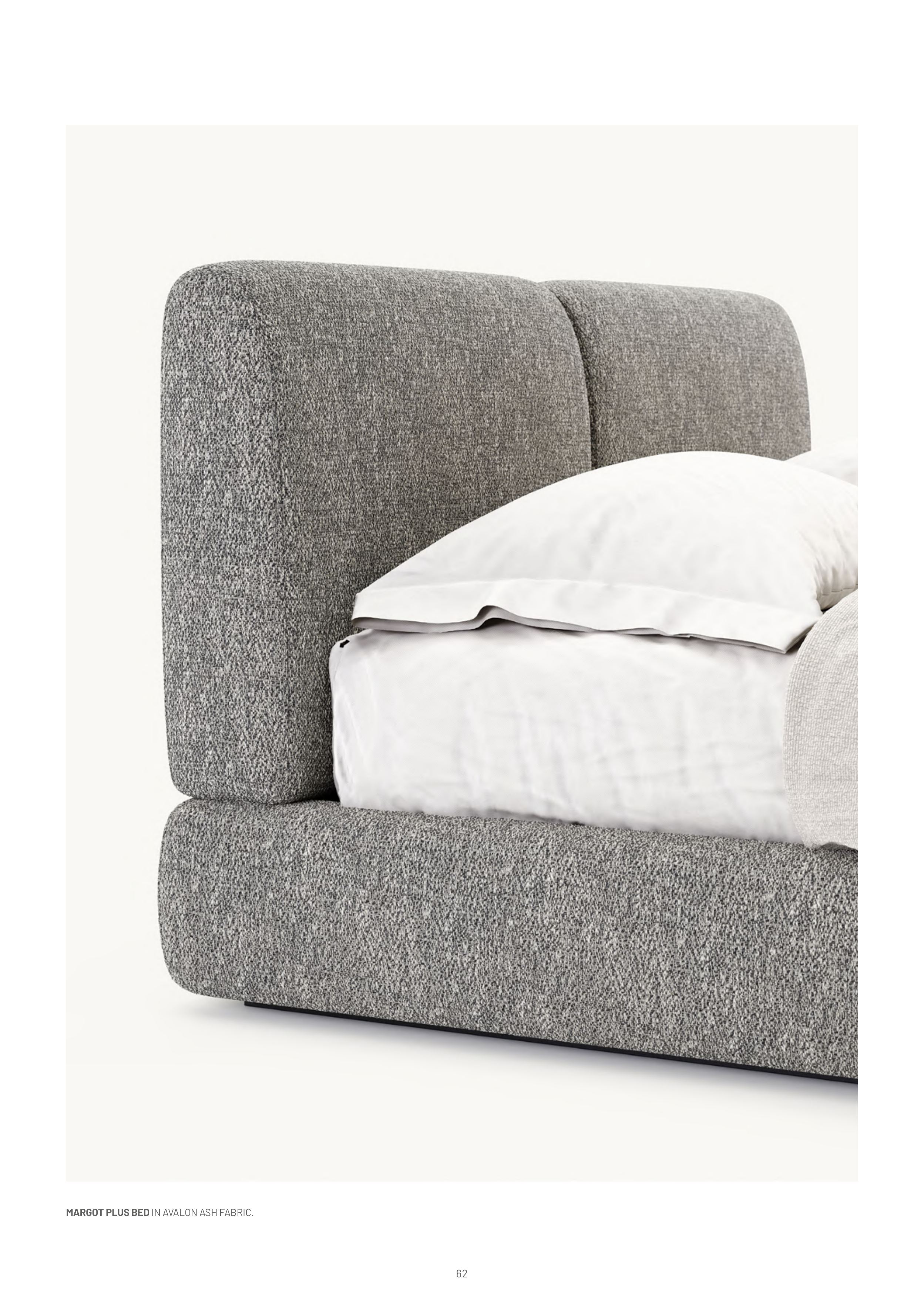 MARGOT PLUS BED IN AVALON ASH FABRIC.