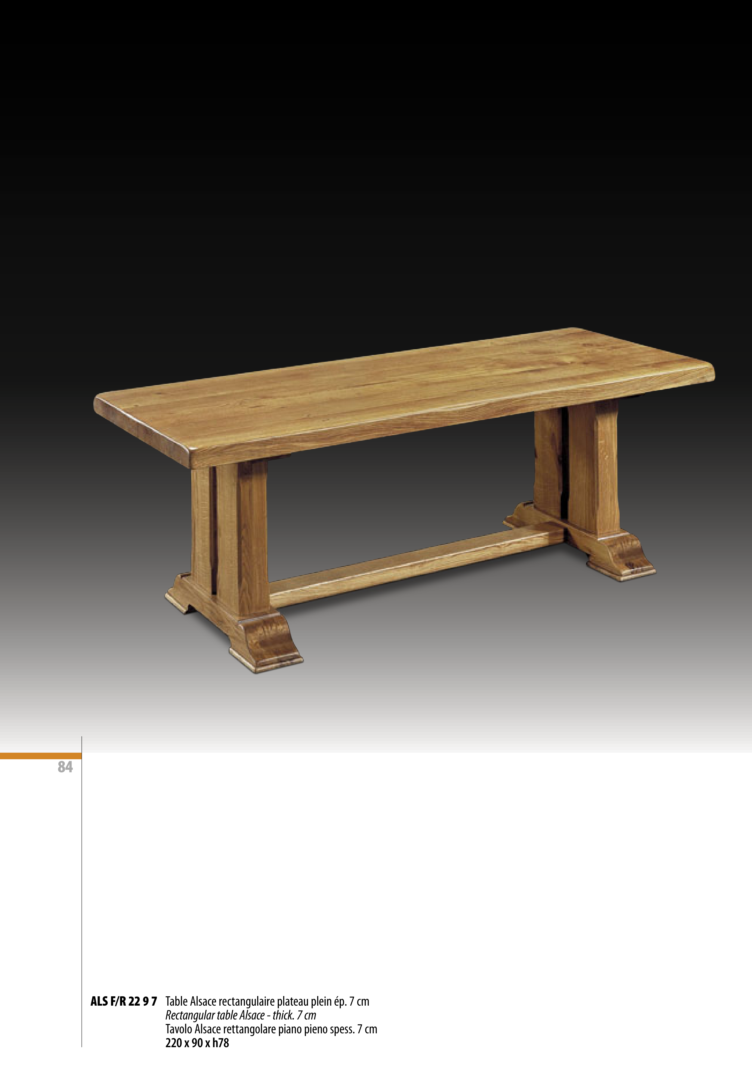 AlS F/R 22 9 7 Table Alsace rectangulaire plateau plein ép. 7 cm