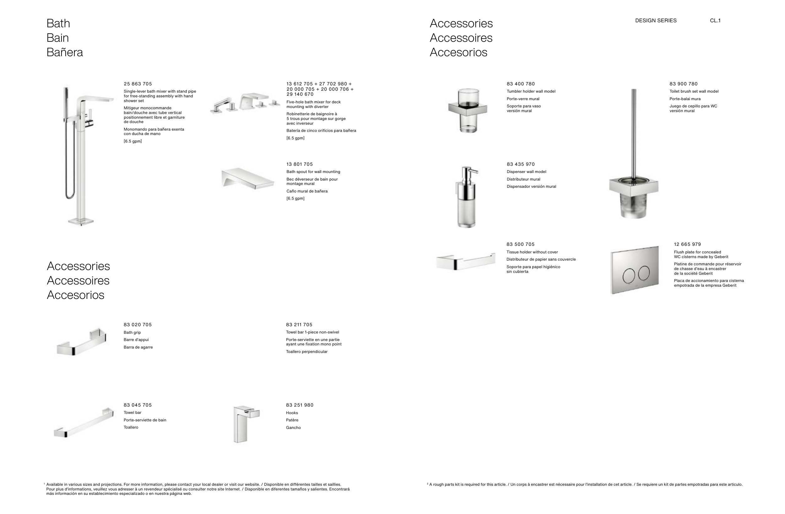 2 A rough parts kit is required for this article. / Un corps à encastrer est nécessaire pour l’installation de cet article. / Se requiere un kit de partes empotradas para este articulo.