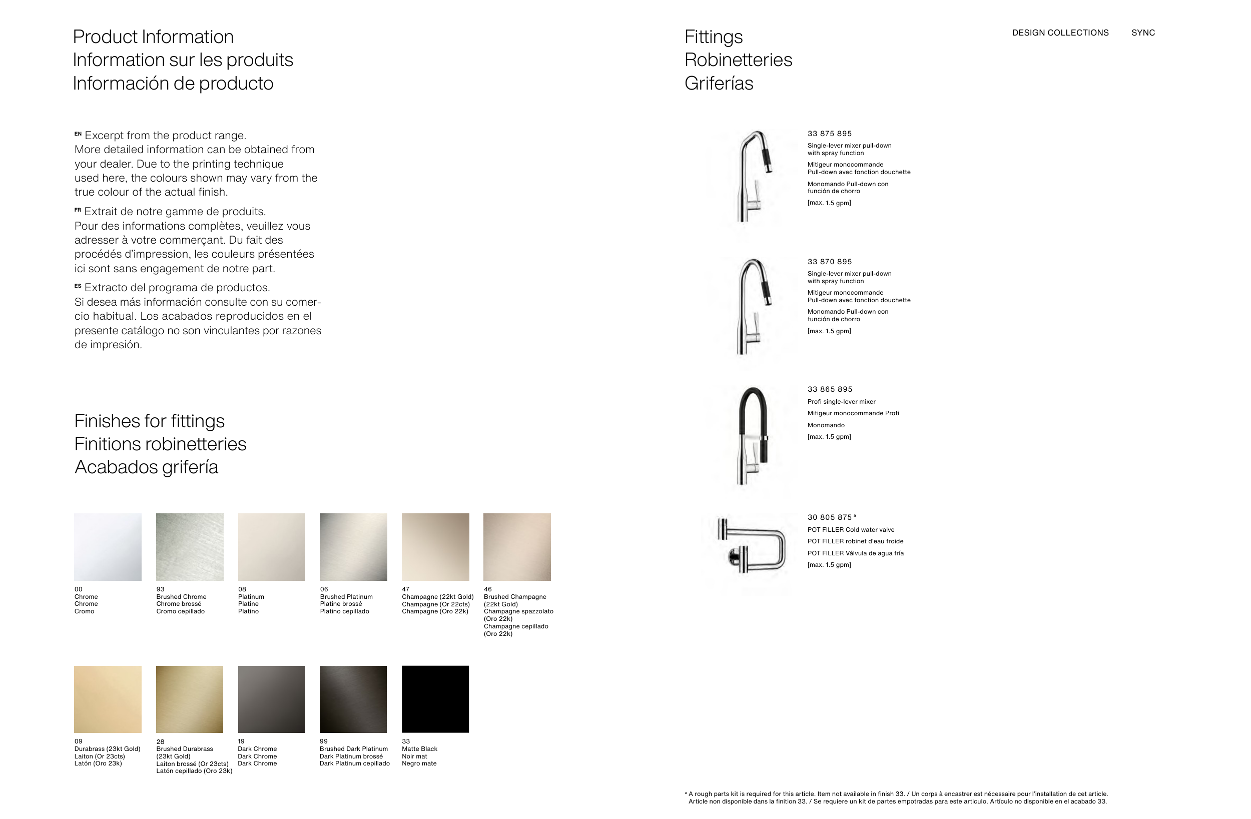 Article non disponible dans la finition 33. / Se requiere un kit de partes empotradas para este articulo. Artículo no disponible en el acabado 33.
