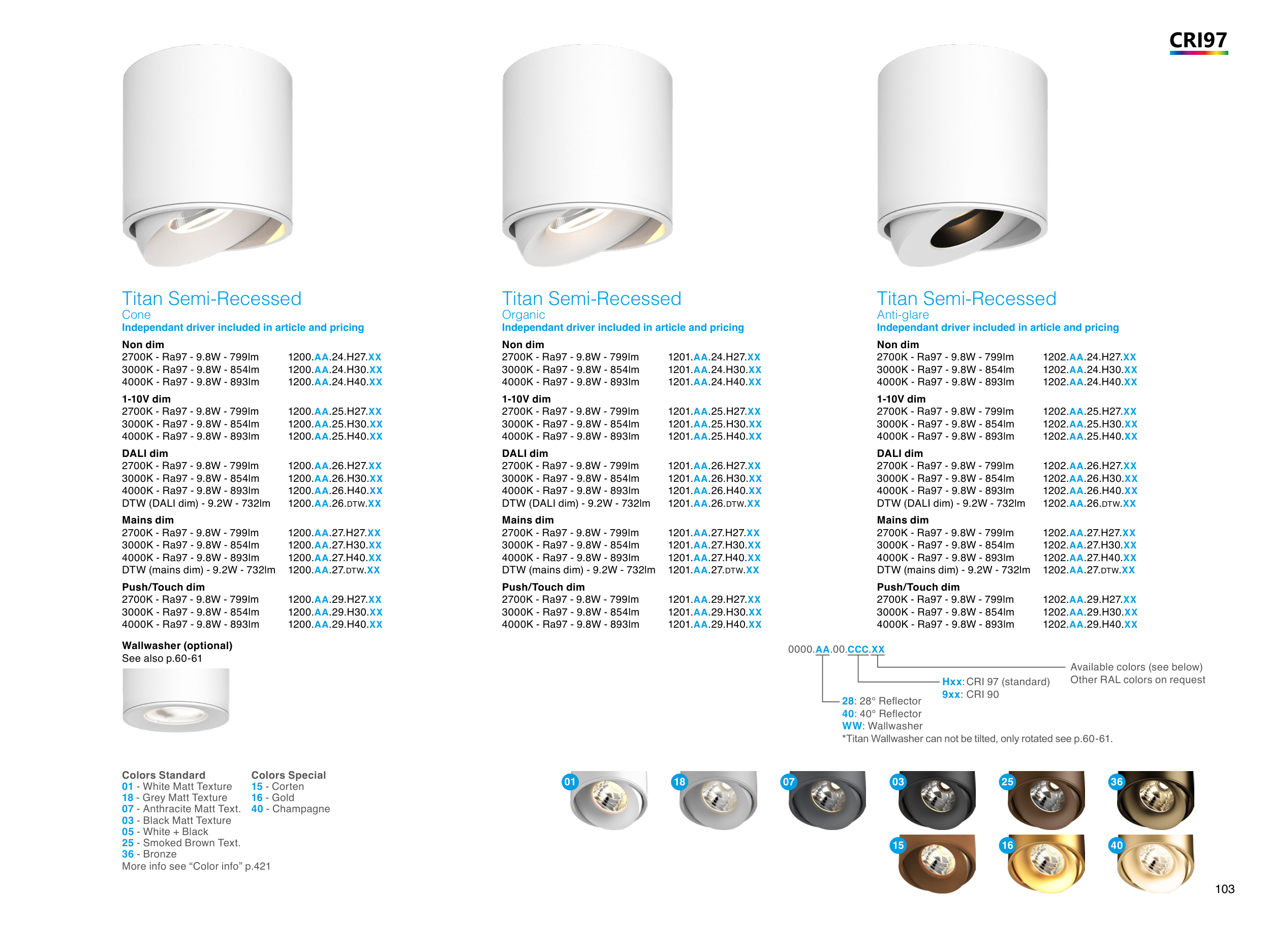 *Titan Wallwasher can not be tilted, only rotated see p.60-61.