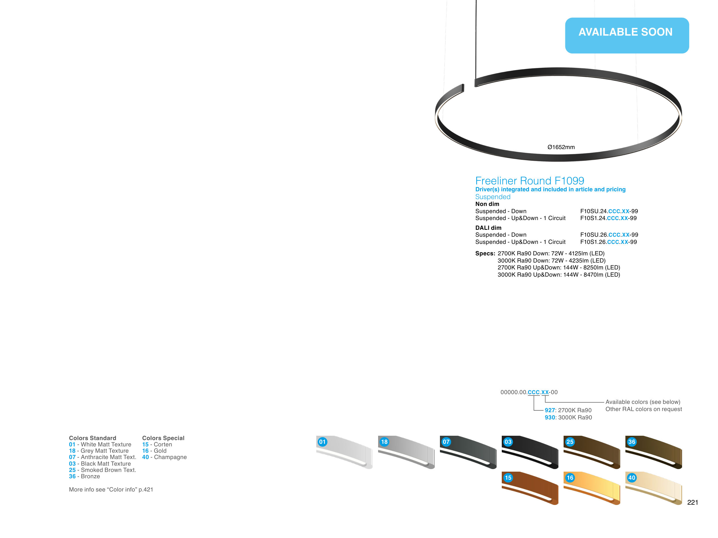 3000K Ra90 Down: 72W - 4235lm (LED)