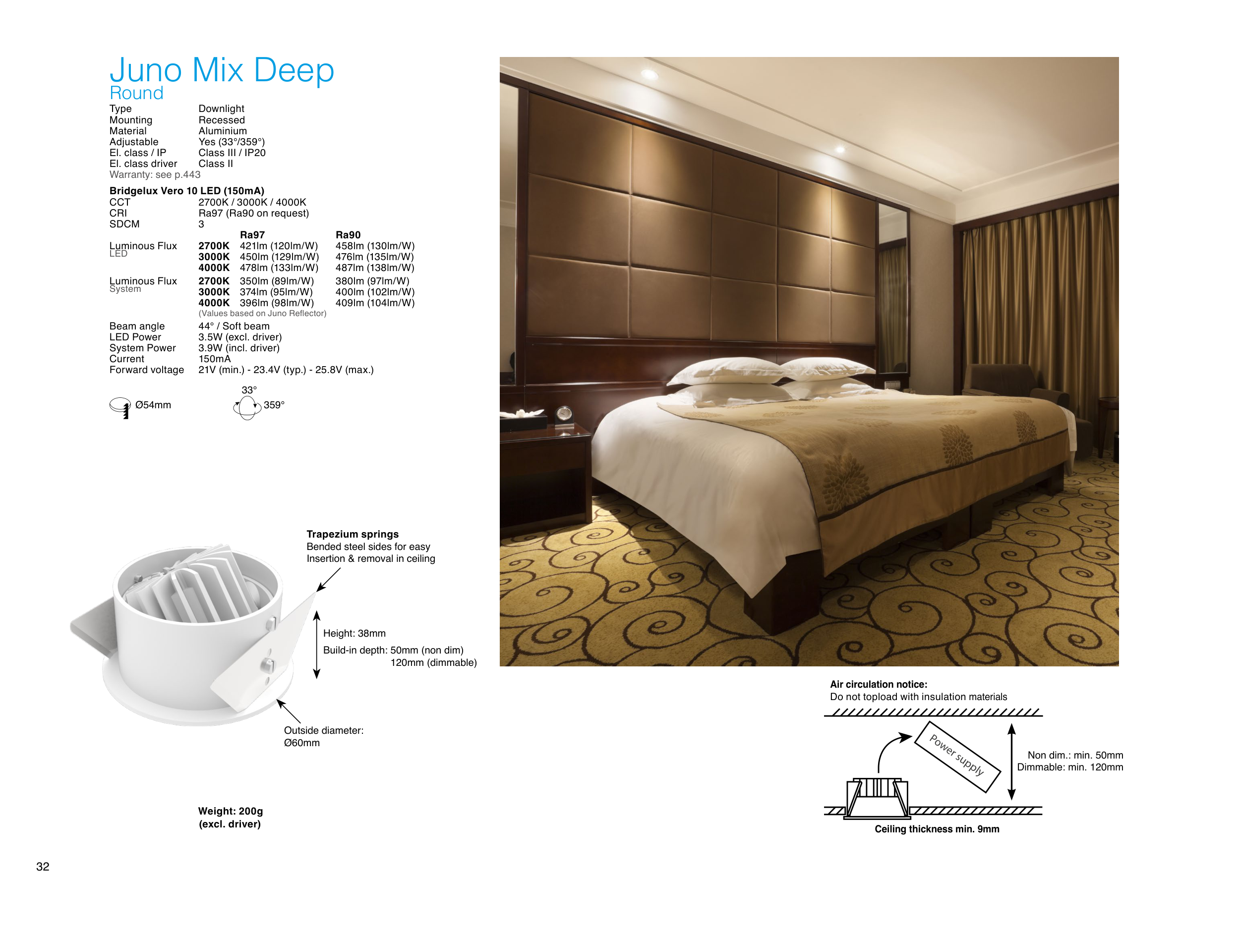 Ceiling thickness min. 9mm