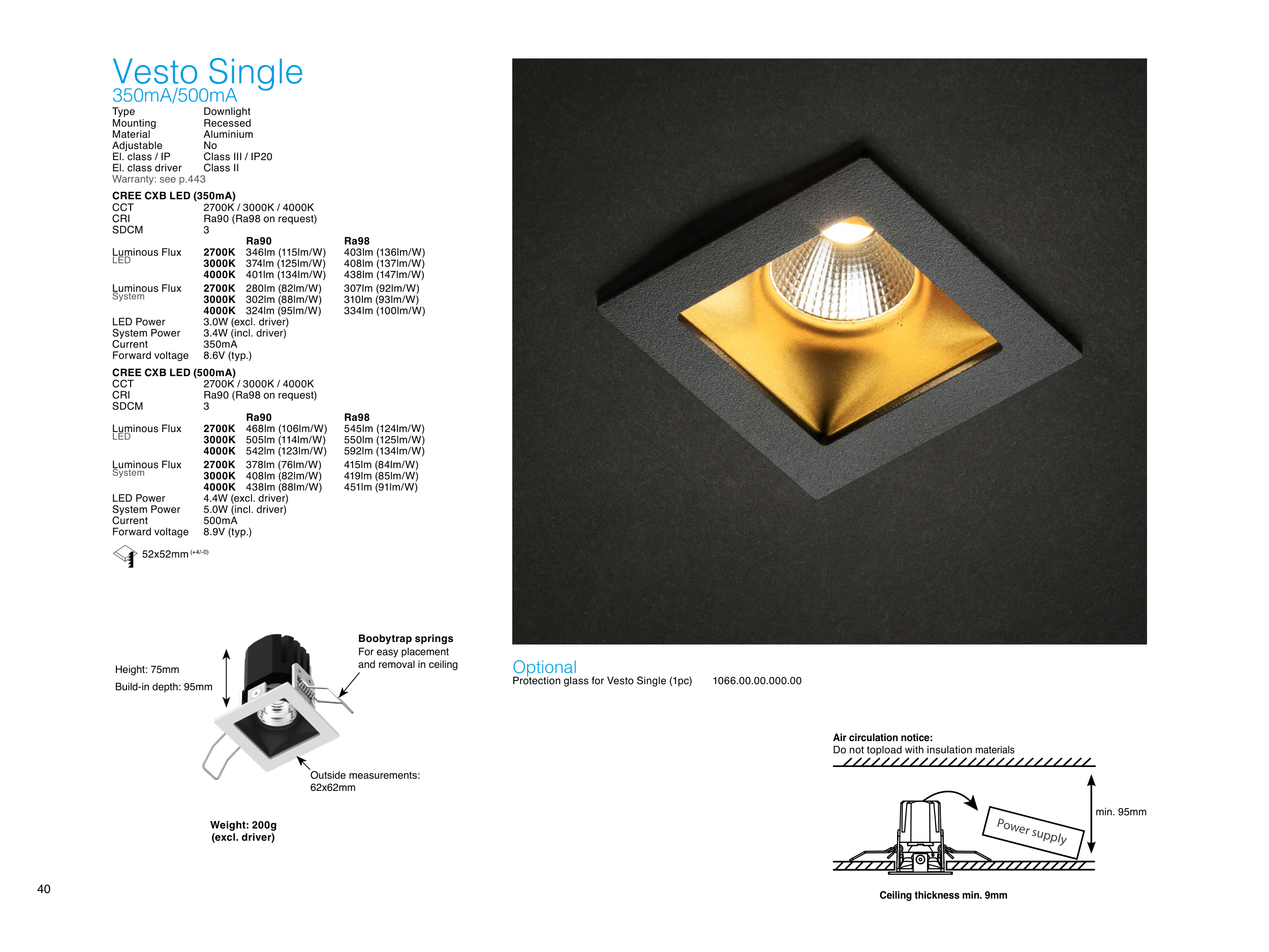 Build-in depth: 95mm