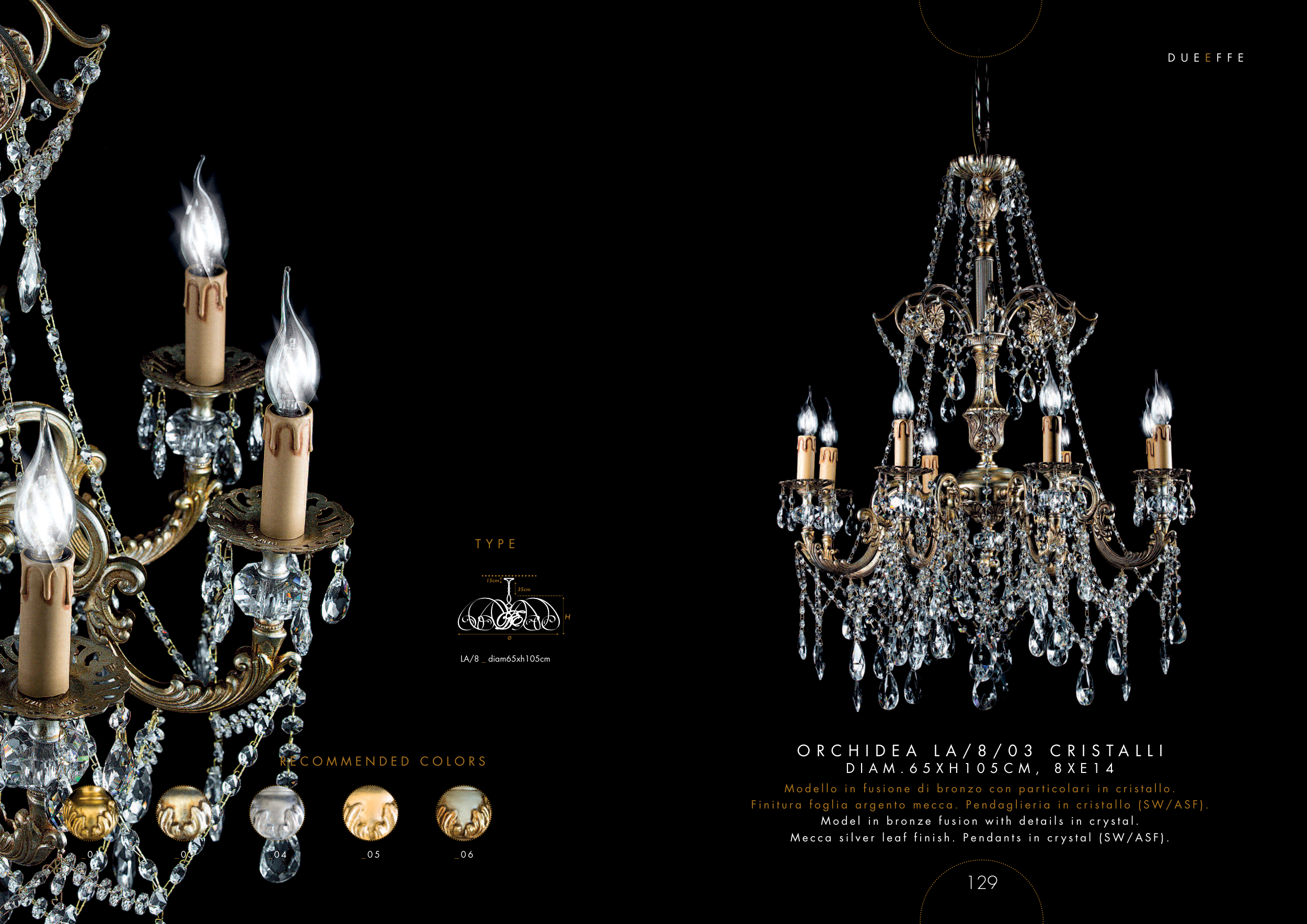 F i n i t u r a f o g l i a a r g e n t o m e c c a . P e n d a g l i e r i a i n c r i s t a l l o ( S W / A S F ) .