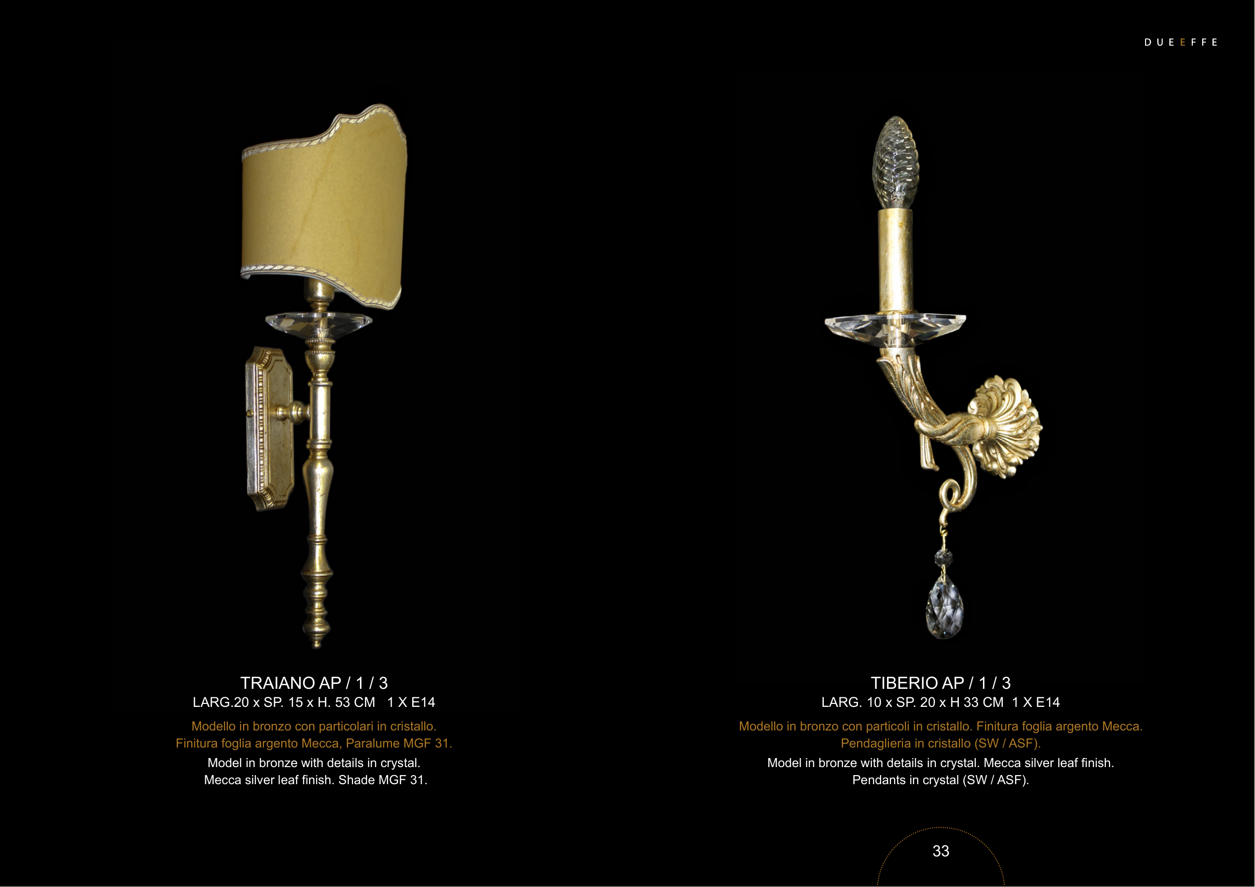 Model in bronze with details in crystal. Mecca silver leaf finish.