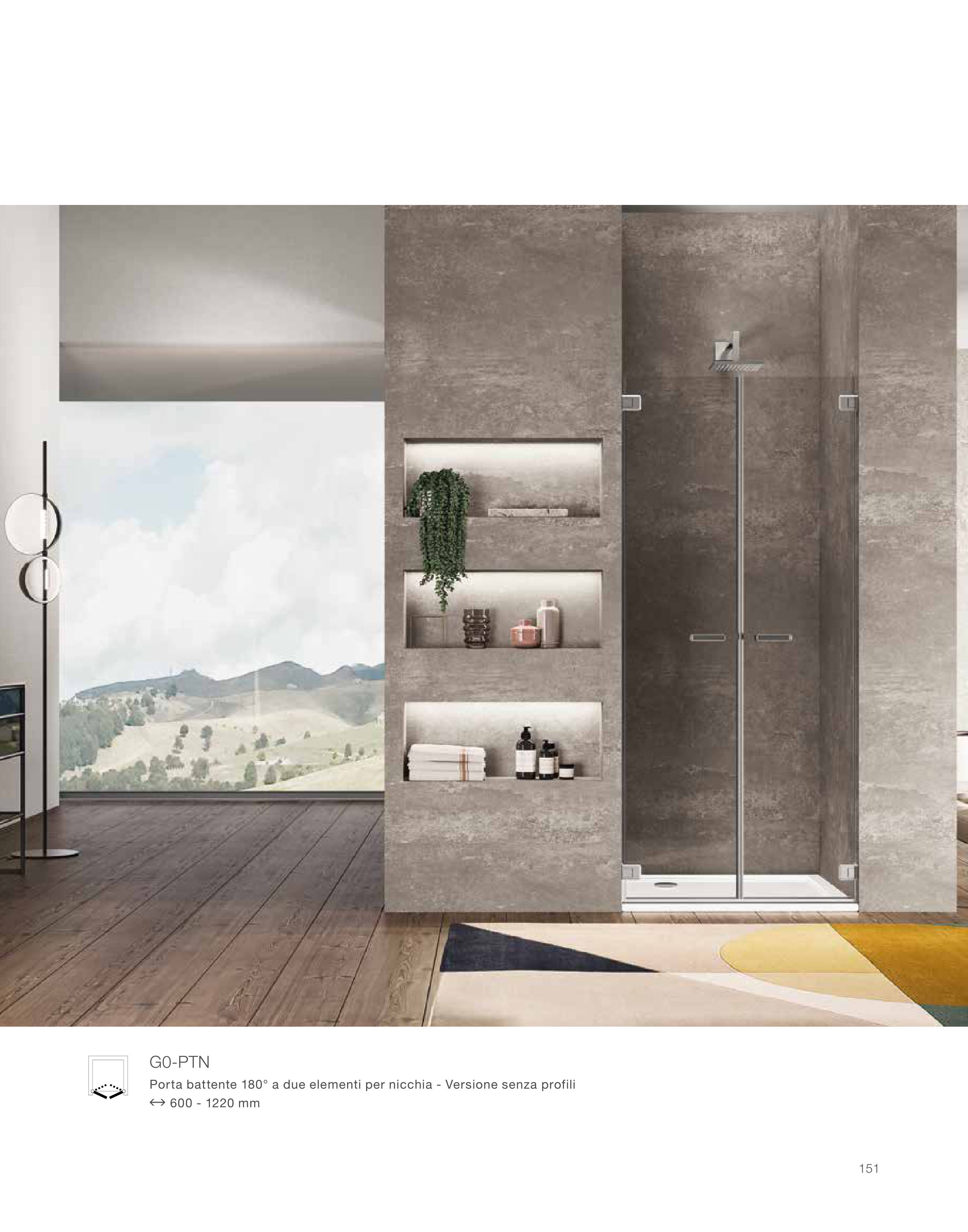 Porta battente 180° a due elementi per nicchia - Versione senza profili