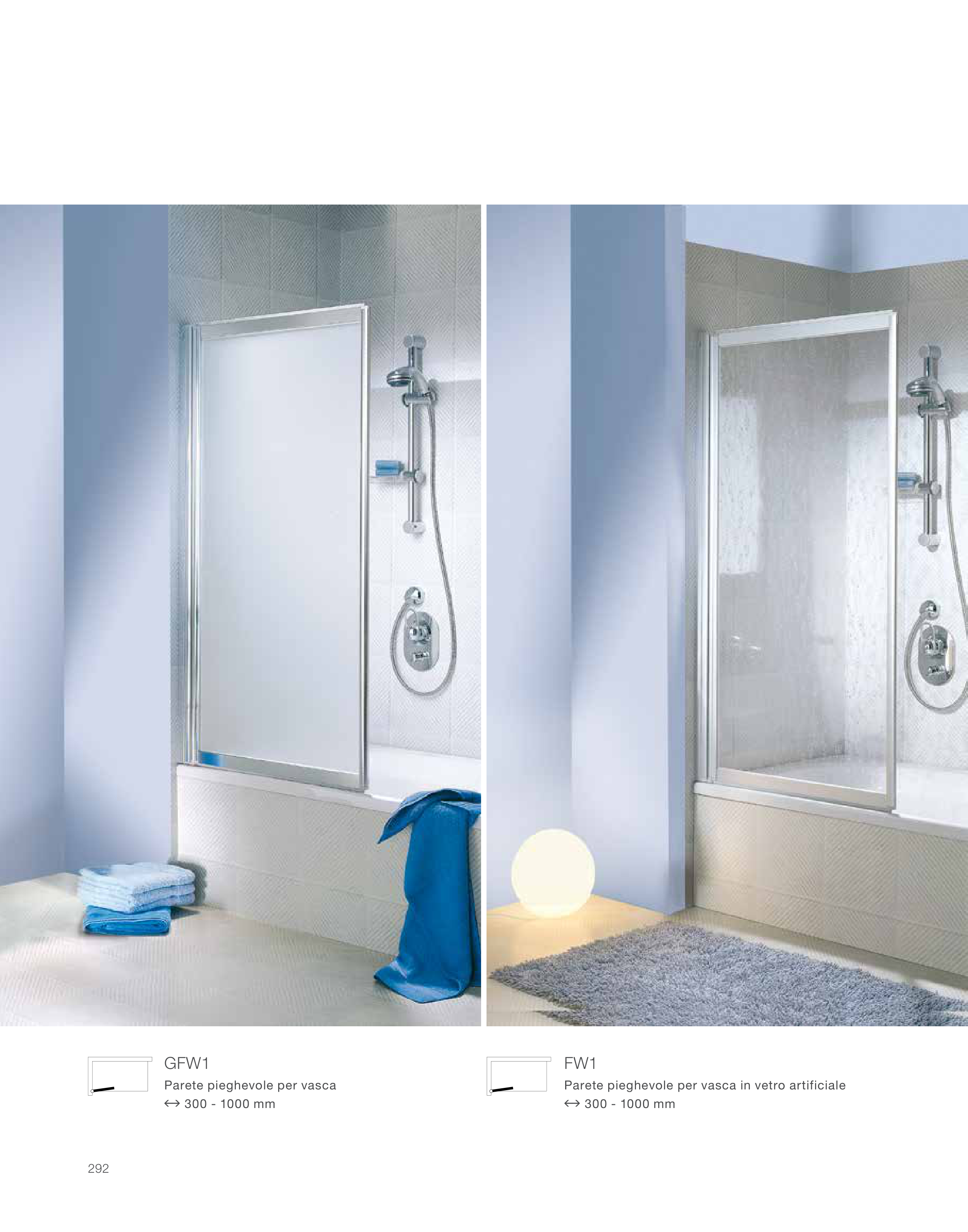 Parete pieghevole per vasca in vetro artificiale