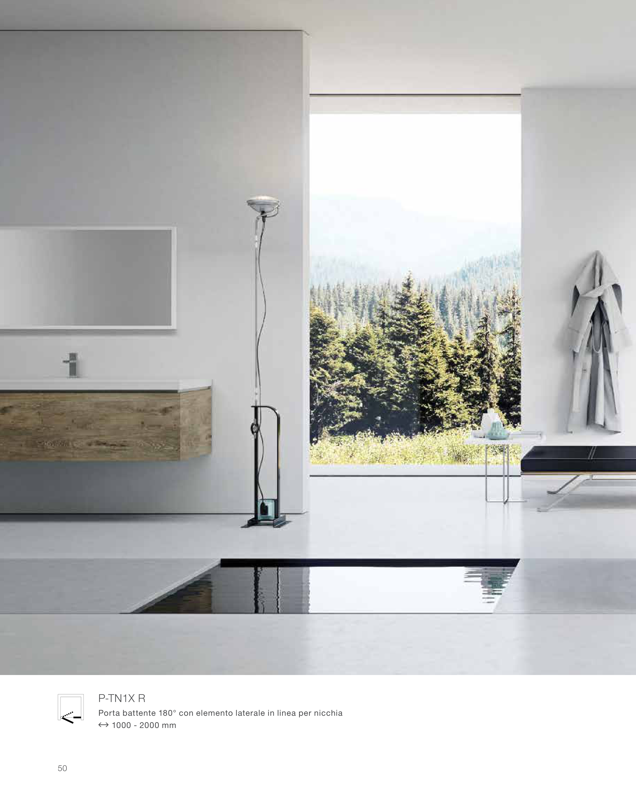 Porta battente 180° con elemento laterale in linea per nicchia