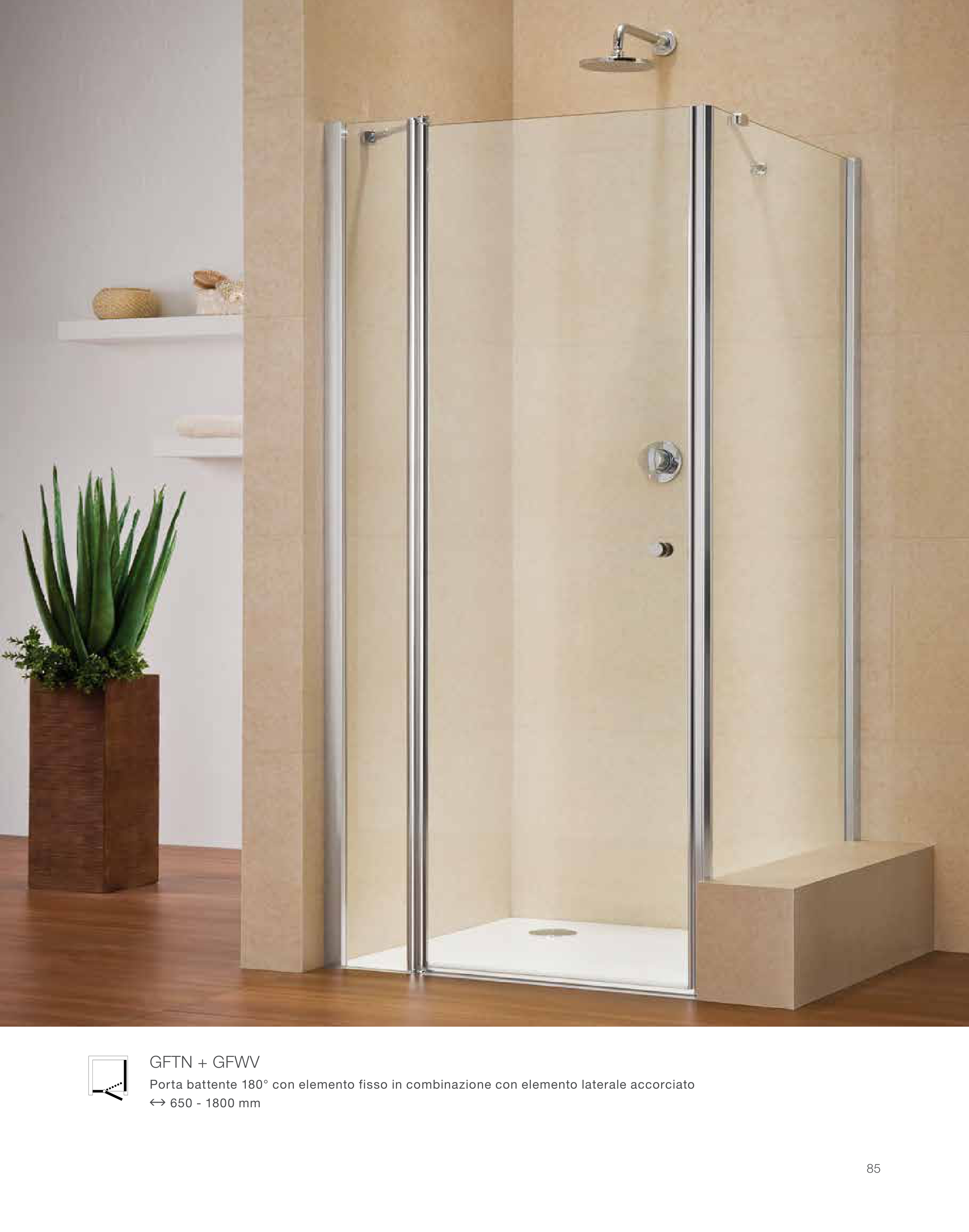Porta battente 180° con elemento fisso in combinazione con elemento laterale accorciato
