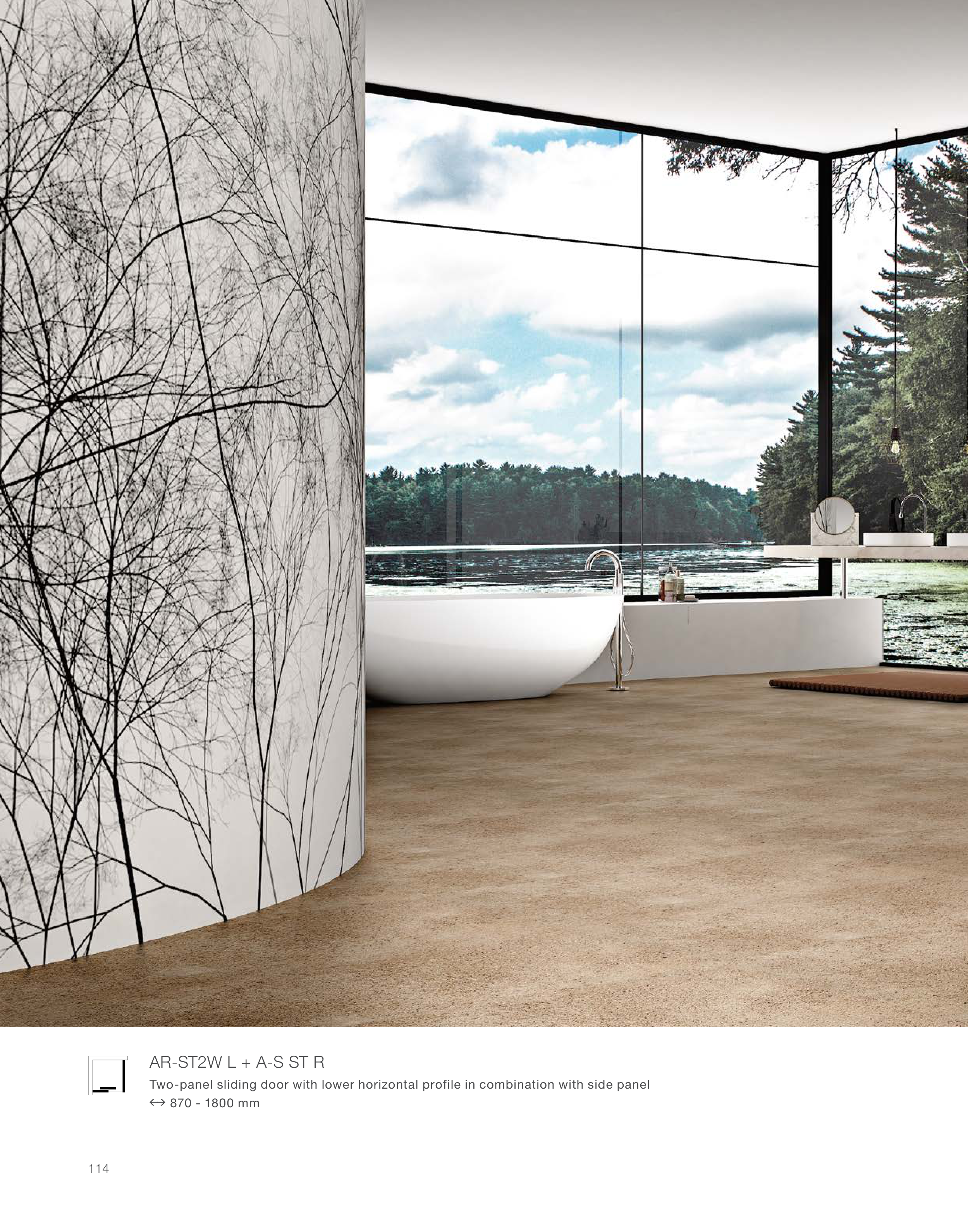 Two-panel sliding door with lower horizontal profile in combination with side panel
