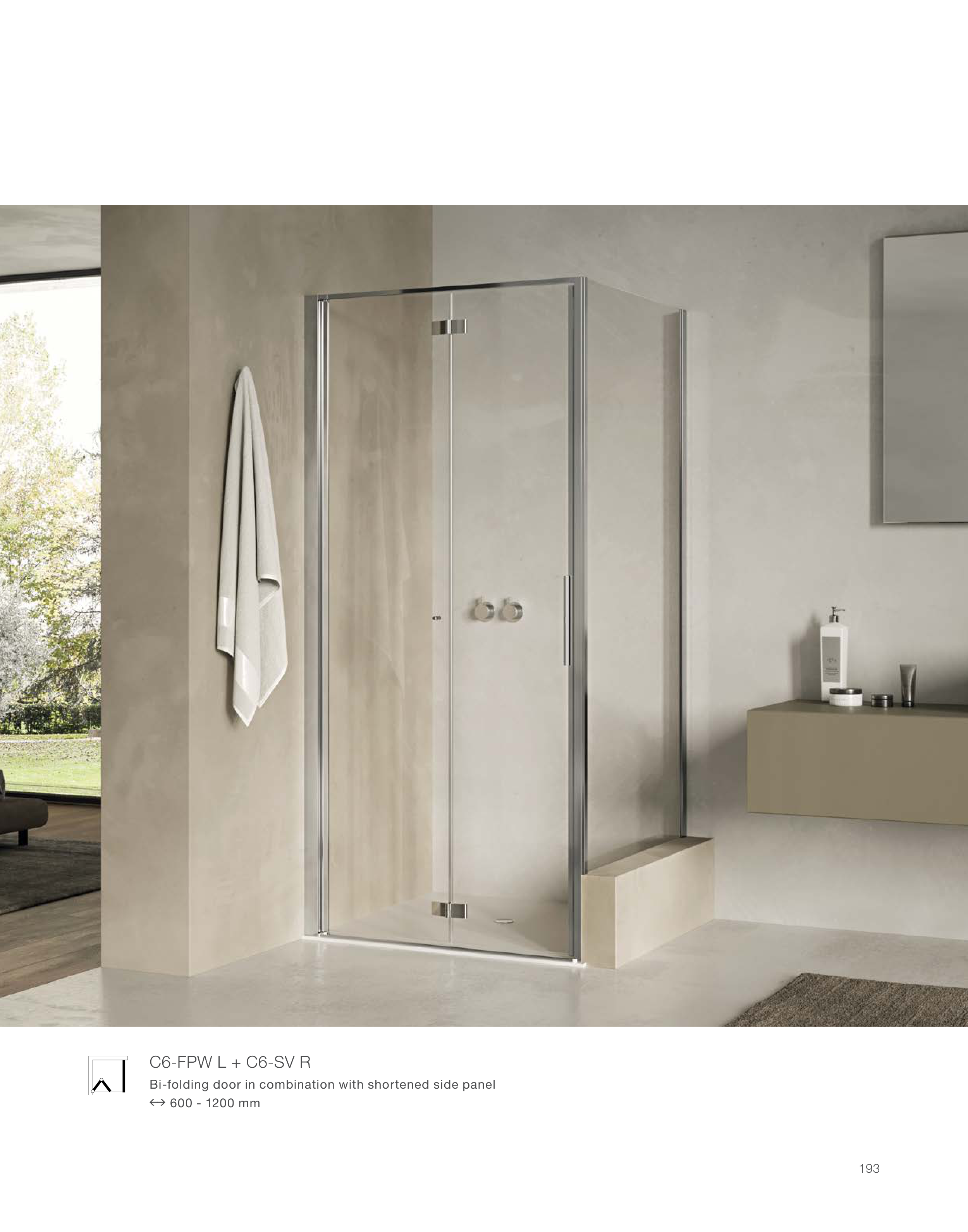 Bi-folding door in combination with shortened side panel