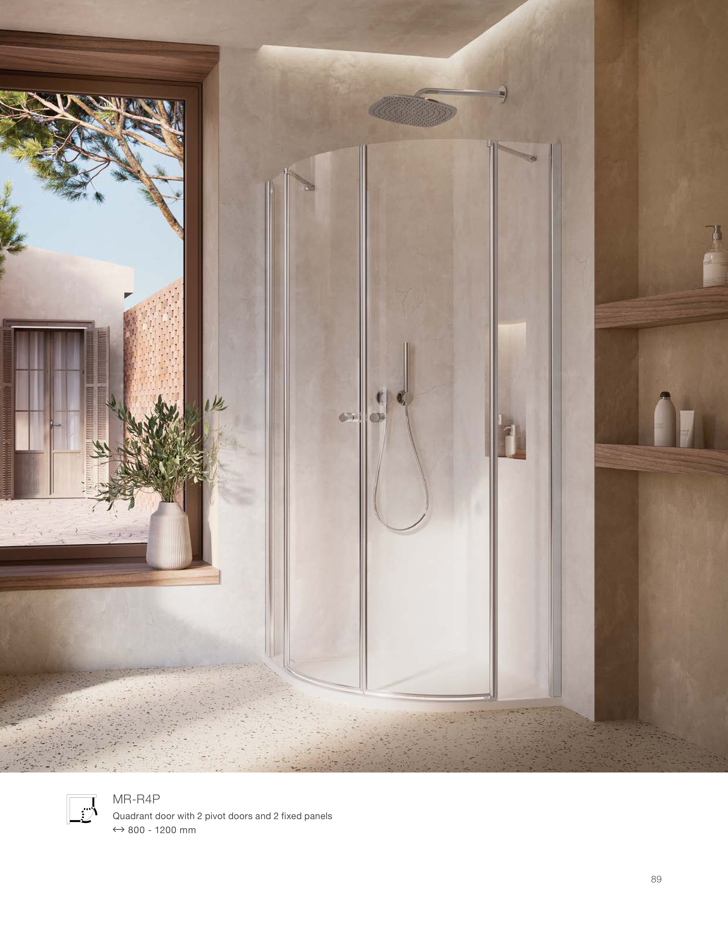 Quadrant door with 2 pivot doors and 2 fixed panels