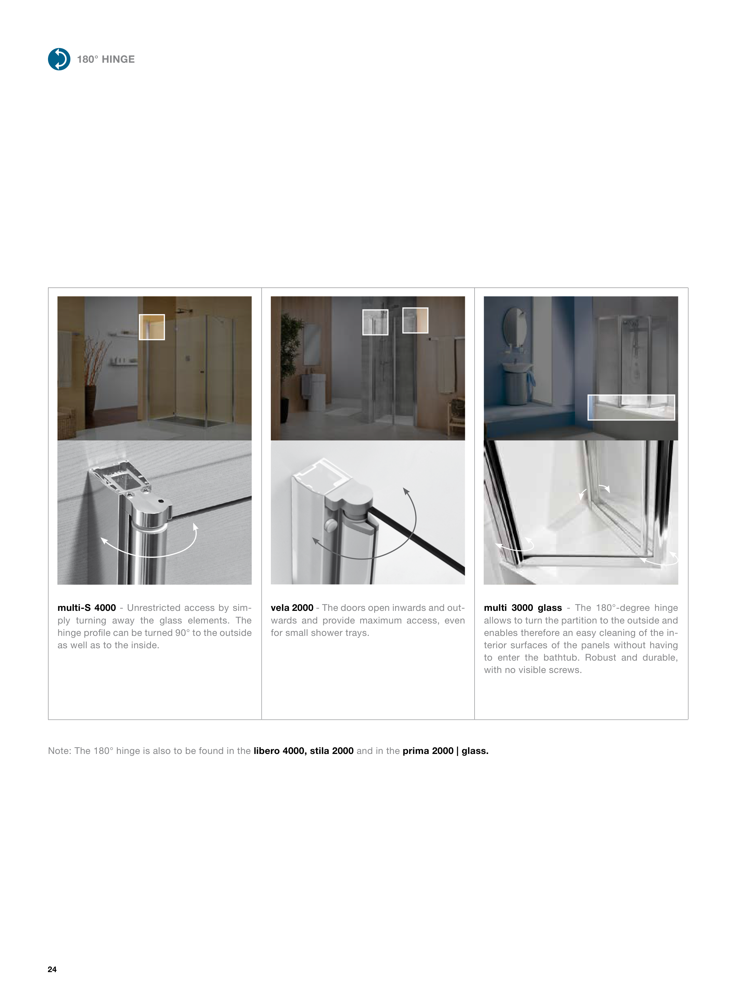 Note: The 180° hinge is also to be found in the libero 4000, stila 2000 and in the prima 2000 | glass.