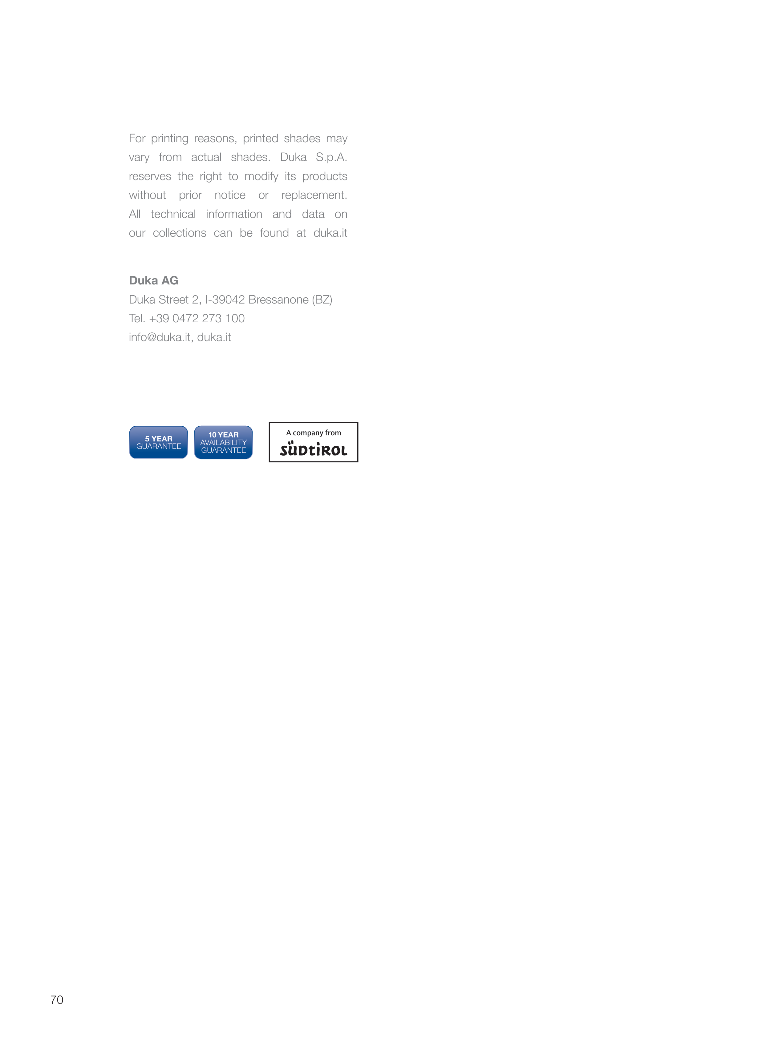 differ from actual colours. Duka AG reserves the