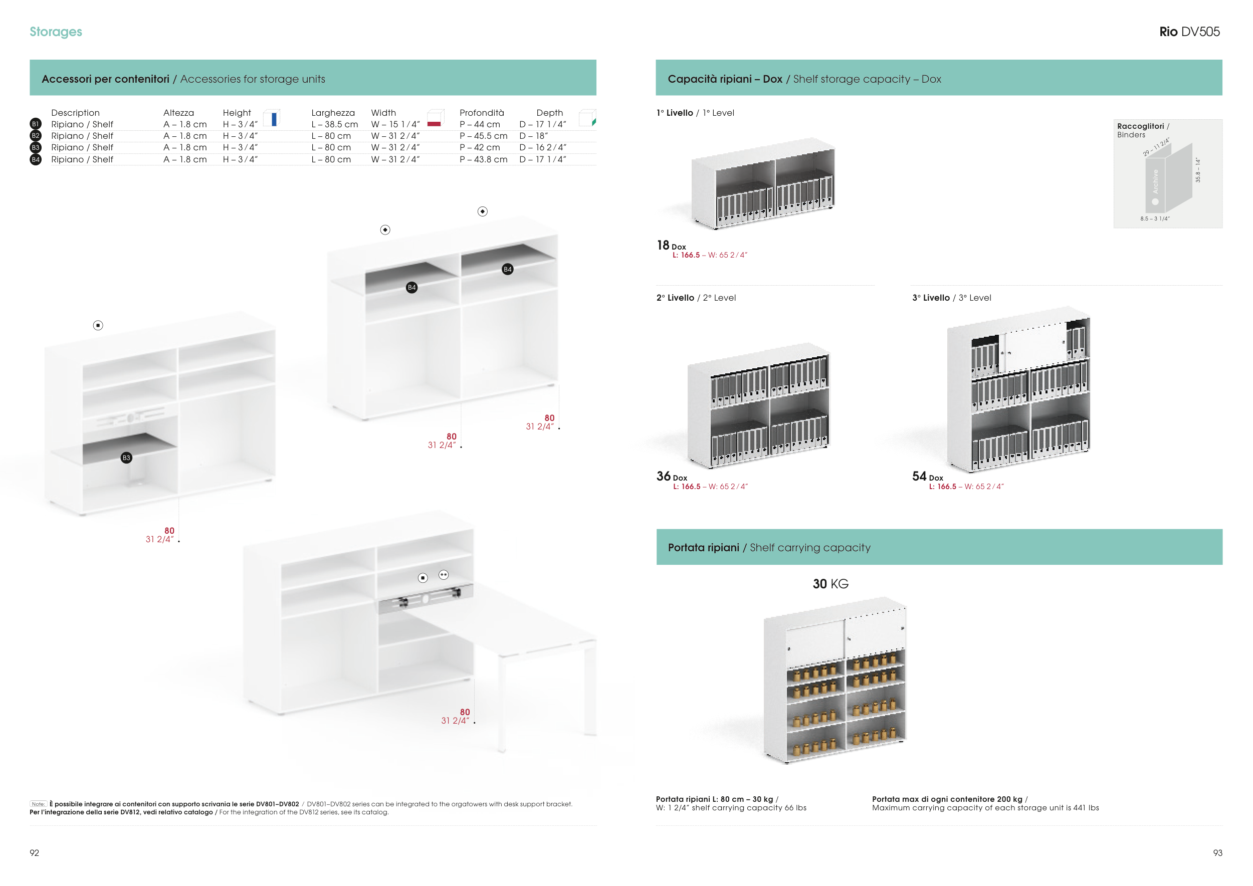 Capacità ripiani – Dox / Shelf storage capacity – Dox